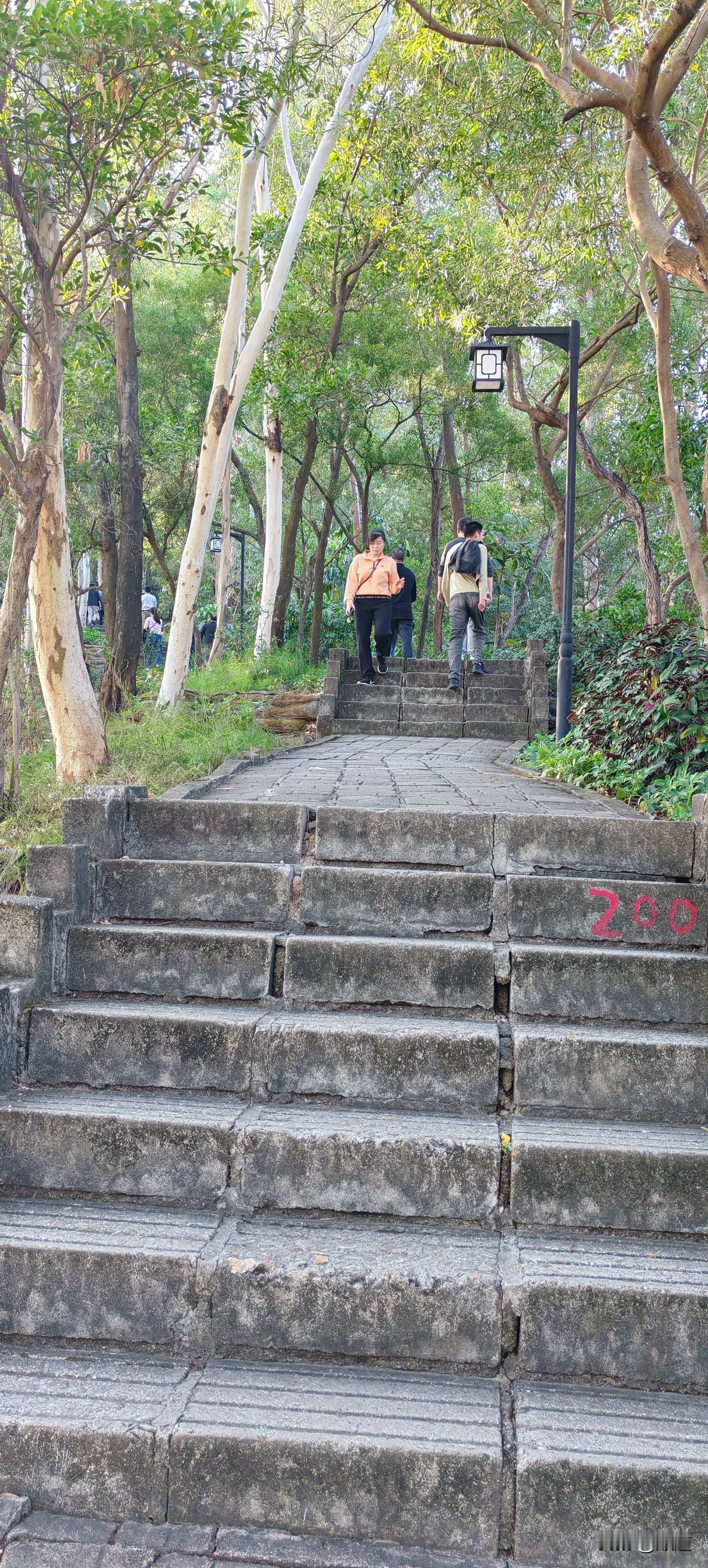 下午4点出门,深圳出门就是风景,要爬的山就在眼前。 路过辑私分局大院儿,不知角落里谁在花盆种的菜,各种南方的绿叶菜,我一个也叫不上名字。 再往前走是一个类似停车场的院子,甘蔗的头已高出栅栏了,长势喜人。 拐角处一大棵木槿正在开着鲜艳的红花。 来到山上才发现登山的人好多,平时不运动感觉气温刚刚好,这一爬起山来,才感觉好热,冒汗,不一会上衣就湿透了。后悔没拿一把扇子来,不能停有蚊子。 每爬50个台阶就停下来歇一歇,凉抉凉快,一丝风没有。 最终爬到1000个台阶,到达福寿亭,录了一段从前海到后海大半个深圳的视频。 随后就往回走,本没打算飞奔下山的,奈何我这过敏劲儿又上来了,感觉小腿好痒,索性一不做二不休,反正也是刺挠,那就快点下山吧,一路小跑就回来了。 上楼时感觉腿有点不受大脑支配了,有些发软。 体质还是不行啊。 不过,53岁了,上两年夜班了。上山一小时,下山仅用20分钟,可以了。 哈哈,既要发现自己的不足,也要肯定自己的优点。