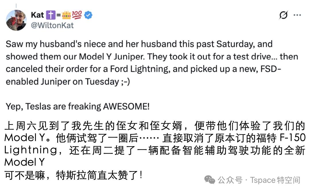 海外权威媒体InsideEVs将Model Y评为“11月最适合大多数用户的最佳纯电动车”。这个结论,其实是其全能产品力在多个维度的必然体现: 1. 可靠性的基石:成熟的三电与热管理系统 尤其在冬季,稳定的续航表现是信心的来源。Model Y成熟的热管理系统,能有效管理电池温度,确保在低温环境下续航衰减更可预测、充电效率更有保障。这不是纸面参数,而是实实在在的“安心感”。 2. 智能化的核心:从“功能”到“体验” Model Y的智能,不止于大屏幕。其智能路线规划能力,能整合实时路况、海拔、车辆能耗模型,精准预估到达时间和电量,并自动规划超充路线。这让长途出行从“电量焦虑”变成了“行程可控”。 3. “无短板”的综合体验 正如车主评价:“强劲性能、可靠续航、便捷操作、独特驾驶体验与宽敞空间”。它可能不是每个单项的“第一”,但却是将动力、能效、空间、智能与驾驶感结合得最均衡的选手之一,完美契合家庭用户对“唯一车辆”的全场景需求。 一个生动的案例:有消费者在试驾Model Y后,直接取消了其他品牌的订单,三天内提走带FSD的版本。这背后,是产品体验形成的、足以颠覆原有决策的强烈吸引力。【来自懂车帝车友圈】