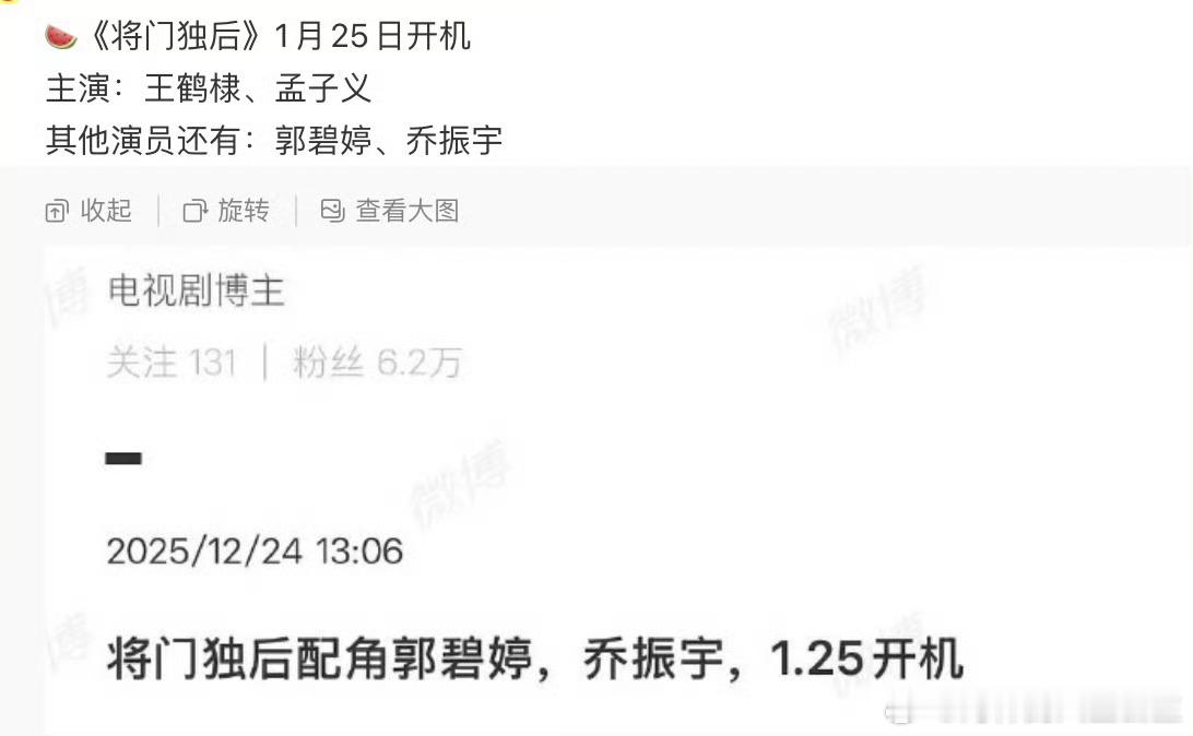 网传将门毒后明天官宣王鹤棣、孟子义最终还是接了将门毒后吗?明天就要官宣了,1月25日就开机了这场选角闹剧可快结束吧…