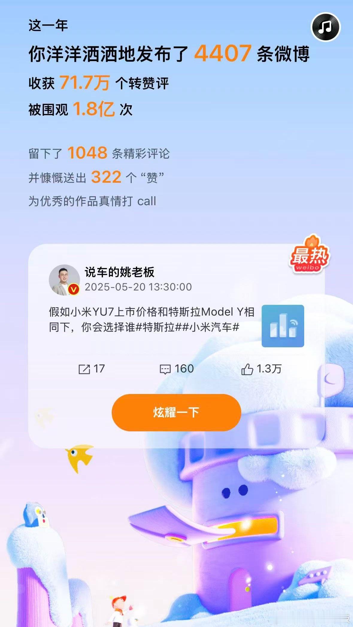 微博年度报告年度报告滚烫出炉!看到“天选社交悍匪”这个标签直接笑喷,简直是为我量身定制!感恩家人们一整年的不离不弃,陪我唠车、聊热点、蹲瓜田评论区抽5个铁粉发奖励,速来晒出你的年度报告!