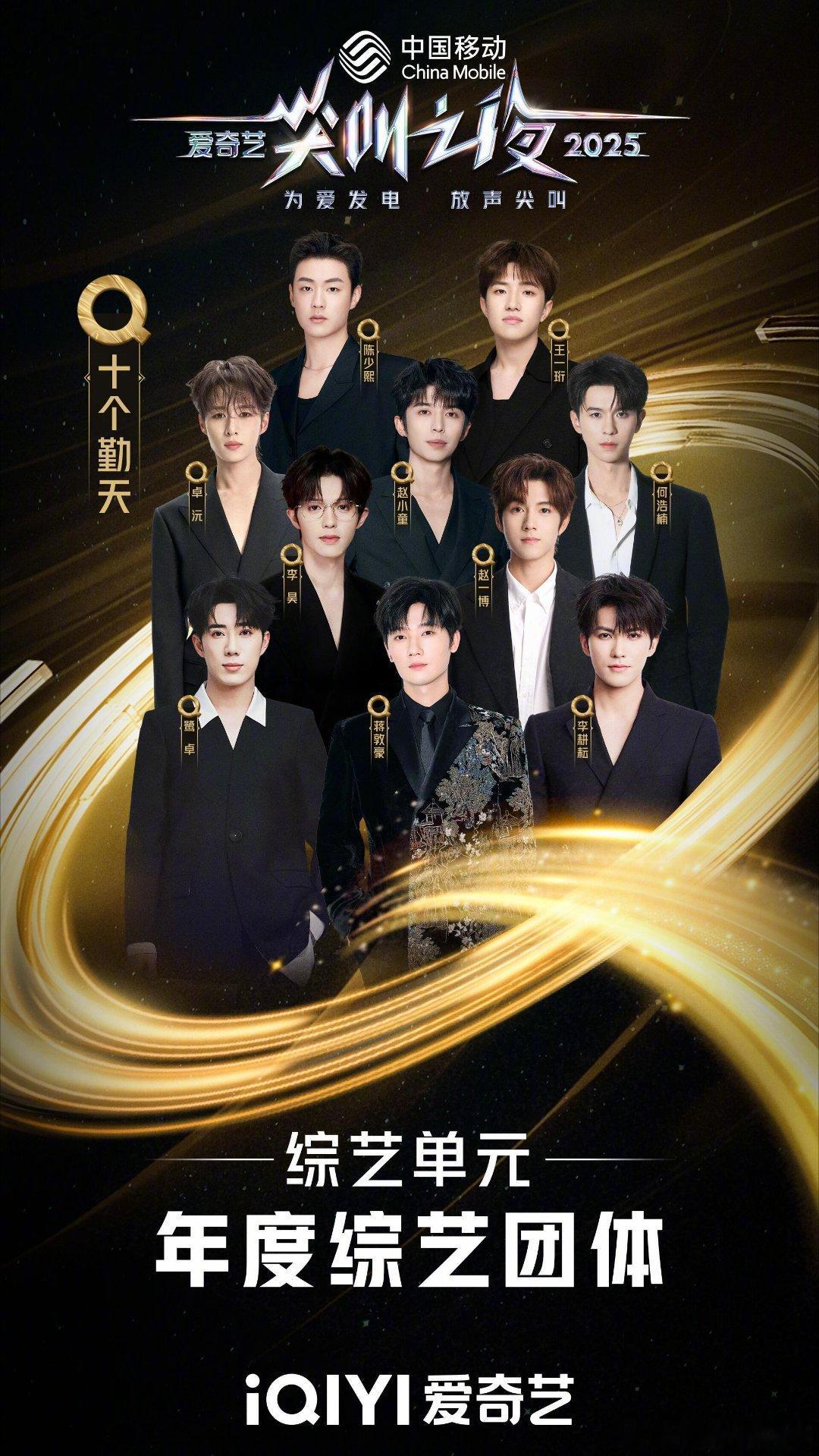 十个勤天 桃厂质子十个勤天简直是现实版的桃厂质子,哥几个从«种地吧»的初次相遇,到如今成为综艺界常青树,一路成长历历在目。尖叫之夜上还拿到了年度优秀综艺,哥几个真是支棱起来了,期待十个勤天一直走花路下去!