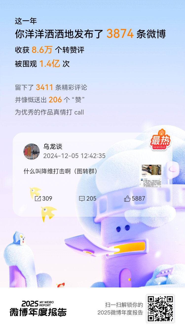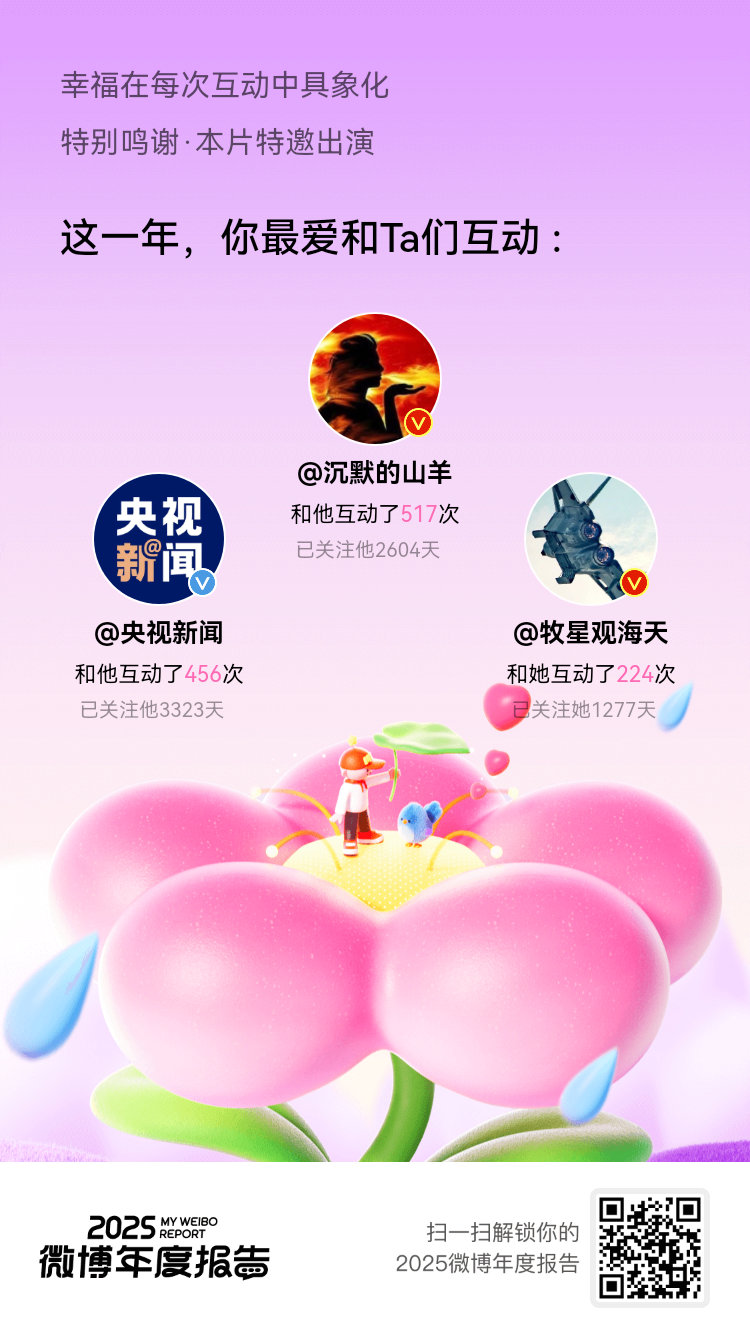 给2025努力的自己点个赞!也把大大的赞送给你们!微博年度报告你的微博年度角色是