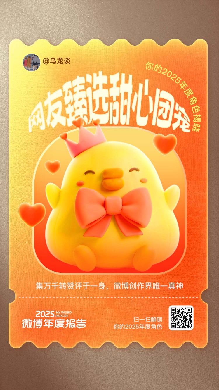 给2025努力的自己点个赞!也把大大的赞送给你们!微博年度报告你的微博年度角色是什么