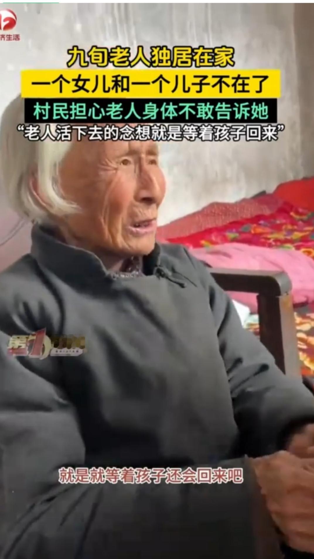 儿女是老人一生的牵挂 据悉,山东一位九旬老人独居在家,其活下去的念想就是等着孩子回来。其实她的儿子和女儿都已经离世,全村为了老人的健康,用善意的谎言告诉老人孩子在外面打工。 儿子和女儿是老人一生的牵挂,期盼着儿女回家是老人活着的动力。老人真是一生都在为儿女操劳,真是可怜天下父母心! 当儿女也应该关心下一生为自己操劳的父母,常回家看看不要让父母牵挂。