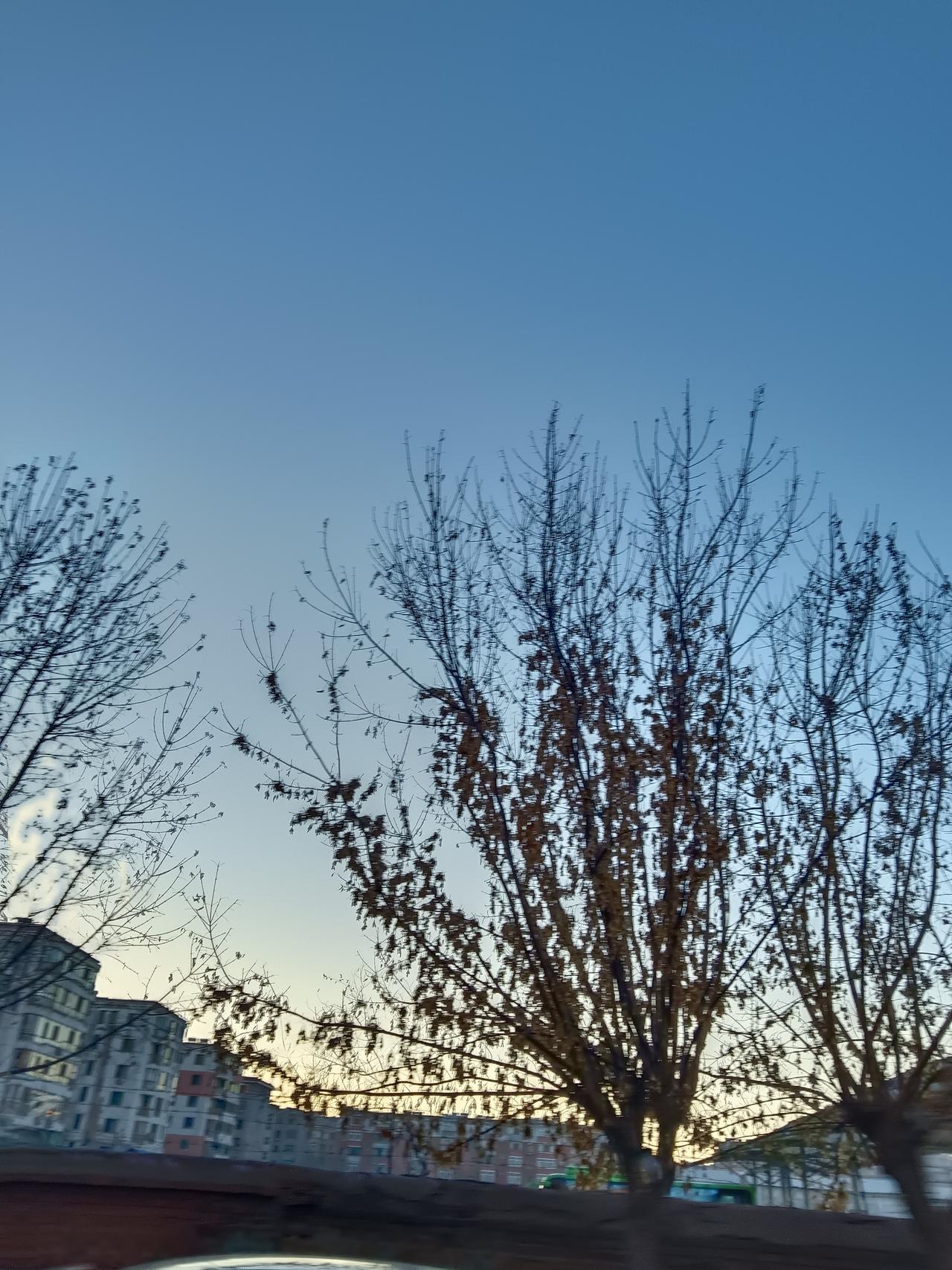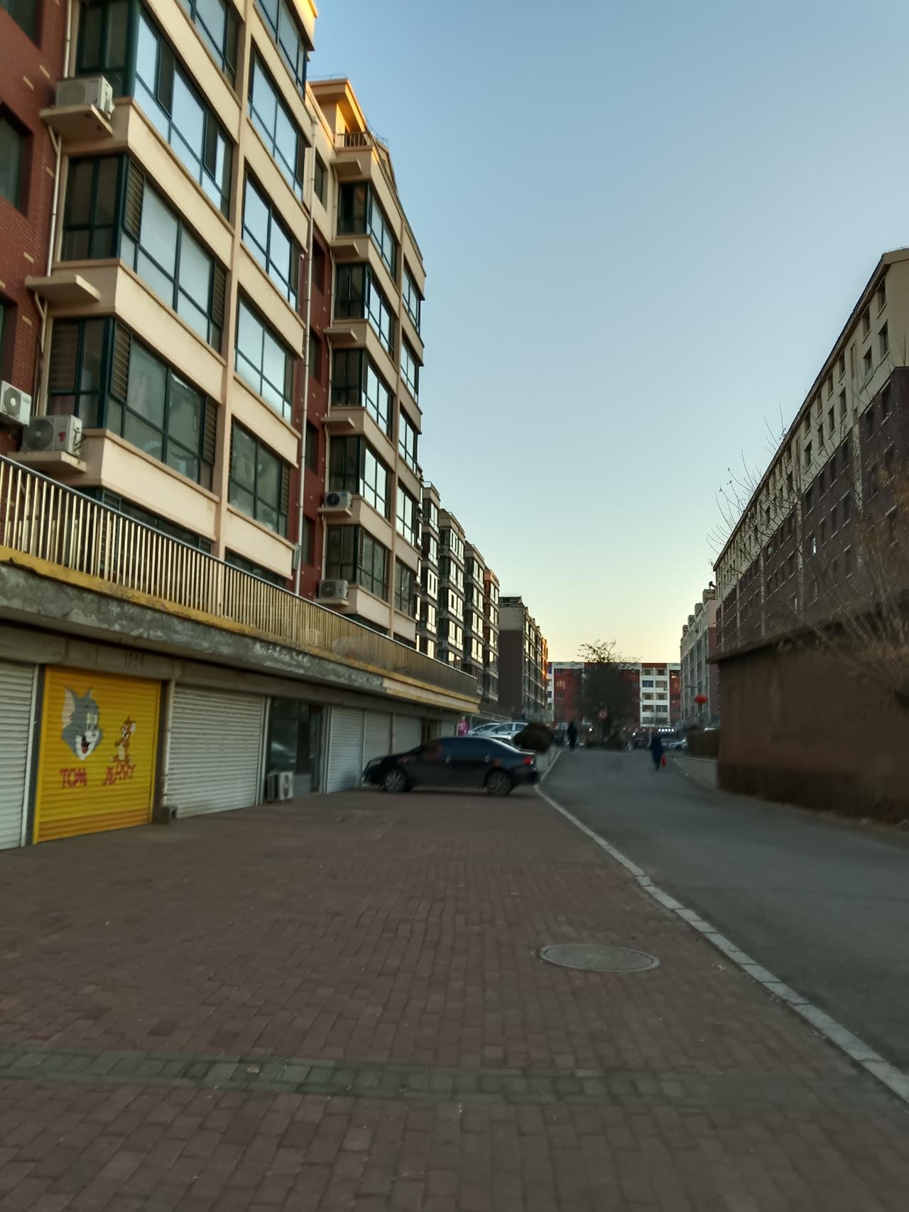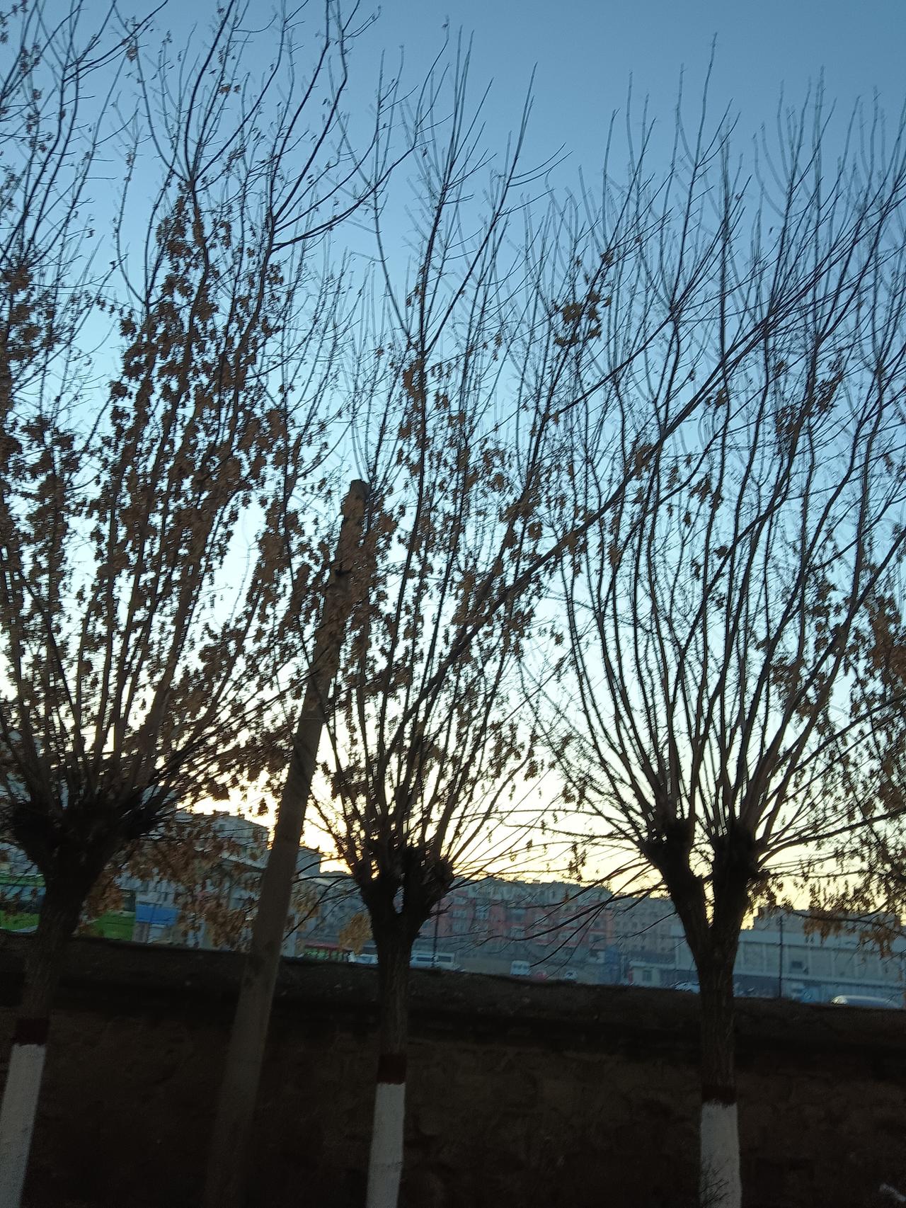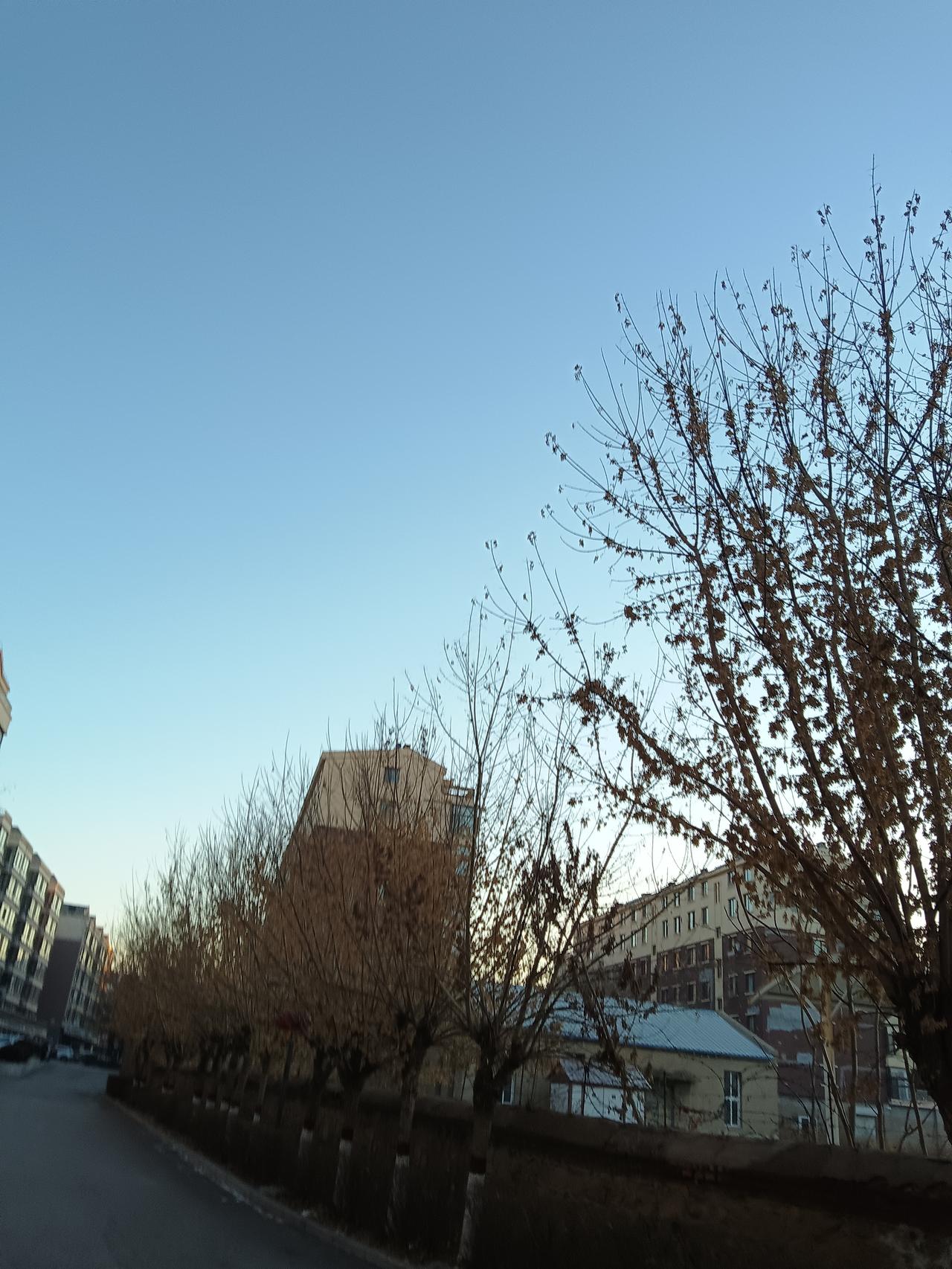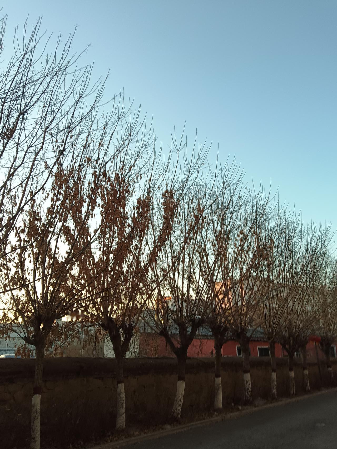 冬日暖阳下的静谧街道,落叶飘零,暖意融融。