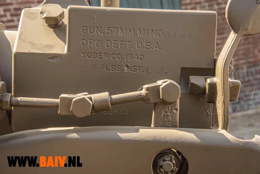 【火炮】美国M1 57mm 反坦克炮。出自法国南部地区,现为私人收藏品,整体保存完好,部件齐全。该型火炮是英制6磅反坦克炮的仿制品,或者说是按照美国制式在设计和加工标准上加以修订的6磅反坦克炮。最初是为了根据《租借法案》为英国生产,其后也成为了美军的制式装备,定型为M1 57mm反坦克炮,至1945年停产前总产量超过16000门。该炮因为全重较轻,易于运输和操作,受到前线部队的欢迎。