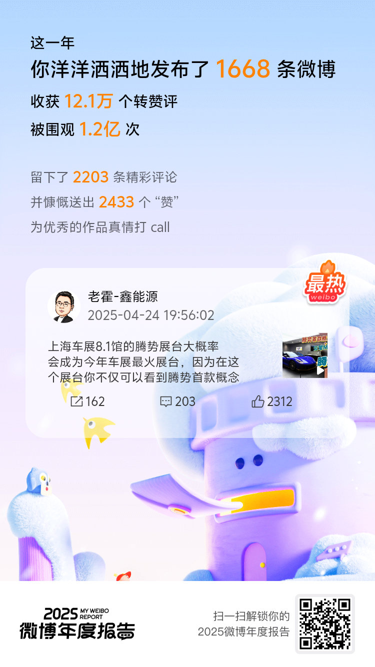 托你们的福,今年我保持金V成就141天 ,借你们的光,橙V保持了224天 !这份快乐也传递给你,速戳>>2025微博年度报告 ,解锁你的微博年度总结吧!微博年度报告微博之夜