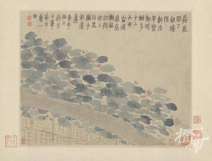 清金农人物山水图页(荷花银塘)故宫博物院藏
