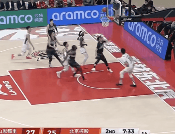第二节比赛,栾利程径直杀入禁区顶着对手上篮打进,吉林领先北控4分。