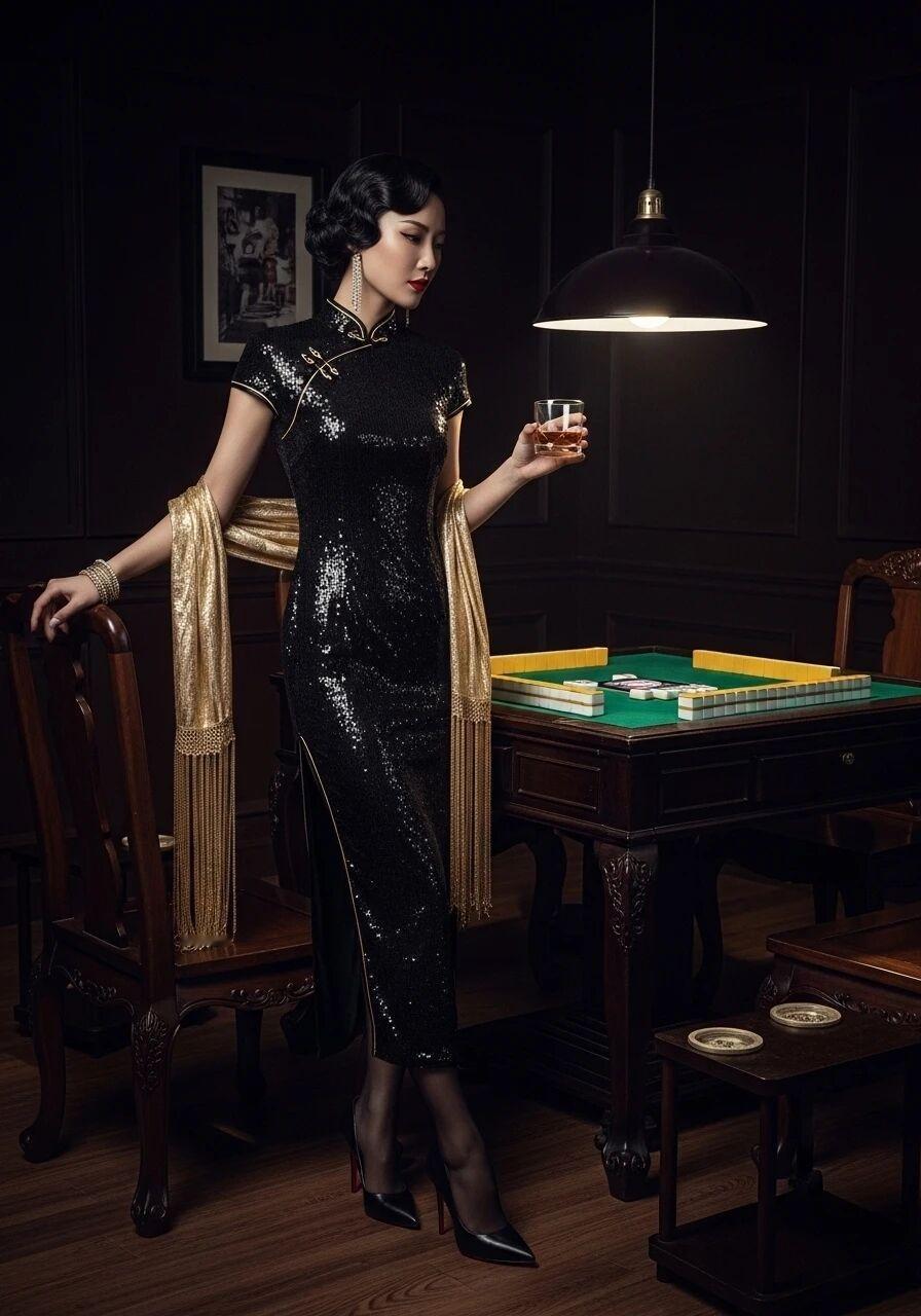 复古红毯风,闪耀黑裙与金色披肩的完美搭配,尽显优雅与魅力。