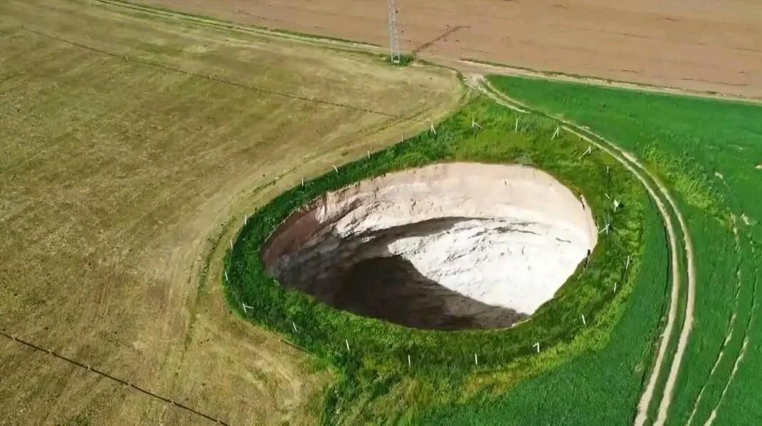 土耳其中部太让人揪心了!科尼亚盆地冒出近700个巨大天坑,最大的直径超30米,深达数十米,直接把大片农田吞成“大地黑洞”。当地农民说,天坑形成时会发出“震耳欲聋的轰鸣声”,地里突然就陷出大坑,种好的庄稼全白费。 罪魁祸首其实是气候变化+过度采水:干旱让地下水位每年降4-5米,是2000年代的8倍,再加上大量非法水井抽水,地下溶洞没了支撑就塌了。这可是土耳其的“粮仓”,11%的可耕地都在这,现在还查出1850个潜在沉降点。 大自然的警告从来不是玩笑,水资源和生态真得好好护着。你觉得该怎么控制地下水开采才管用?