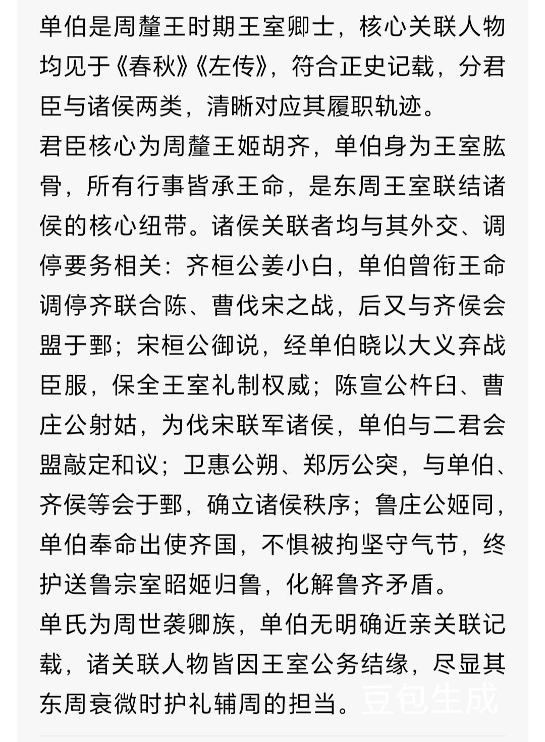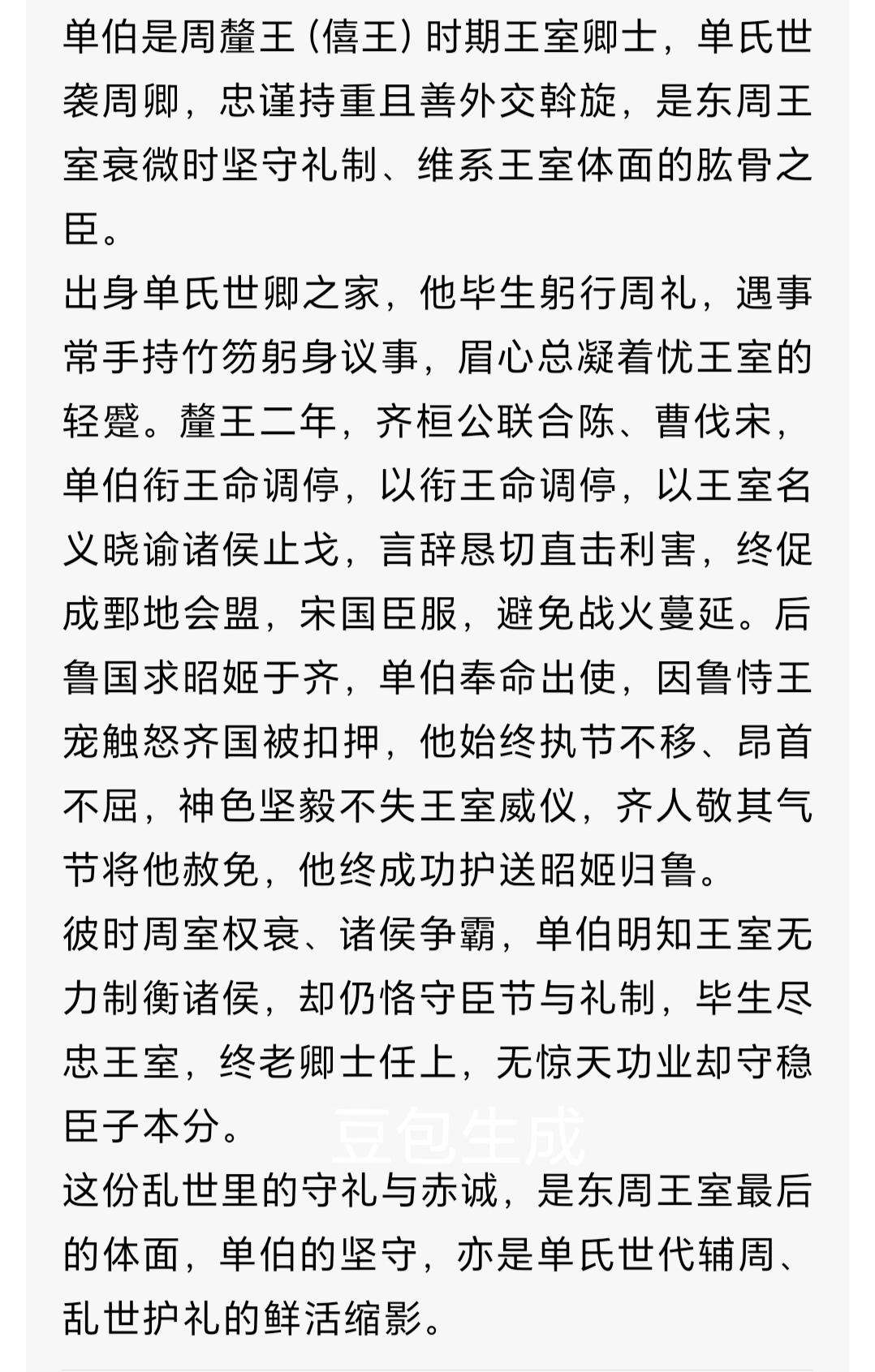 当王室遭“亲弟”抢位,这位大臣如何用嘴皮子翻盘? 开头暴击: 公元前681年,齐国的大牢里关着一位周天子的使臣。他叫单(Shàn)伯。外面,齐桓公正磨刀霍霍,执意要迎娶一位本该按礼制明媒正娶的女子——周王的女儿王姬。而单伯的任务,就是凭一张嘴,叫停这场有损王室颜面的婚事。刀架在脖子上,这番话,他还能说出口吗? 正文模块(一):乱世出场,他的名字就是“职位” 很多人不知道,“单伯”并非他的本名。“单”是他的封地(今河南孟津一带),“伯”是周代的爵位,他实则是以“单地伯爵”的身份载于史册。他侍奉的周釐(xī)王,亦称周僖王,是东周第四任天子,恰逢齐桓公初露称霸锋芒的春秋早期。 彼时的周王室,早已没了西周鼎盛时的威仪,只剩一块褪色的金字招牌。诸侯争霸愈演愈烈,没人再真心将天子奉为共主,但单伯这类王室近臣,却是守护这面招牌最后的“裱糊匠”。他的日常,便是在齐、楚、晋等诸侯强国间走钢丝,以古老的“周礼”为谈判筹码,为日渐衰微的王室挣回最后一丝体面。 正文模块(二):“抢婚”风波,孤身入齐的致命任务 单伯一生最惊心动魄的危机,在《春秋》中仅寥寥数字记载:“单伯送王姬。……齐人执单伯。”背后却是足以震动周室的惊涛骇浪。 原来,周釐王为笼络齐桓公这位崛起的霸主,决定将女儿王姬嫁给他。可按周礼规制,诸侯迎娶天子之女,需由天子指派卿士主婚,流程完备后方能成婚。谁知流程尚未走完,齐桓公为彰显霸主权威,竟擅自将王姬接入齐国,此举严重违背礼制,让周王室颜面扫地。 危难之际,谁去齐国交涉?一步踏错便是身首异处。单伯毅然接下这烫手山芋。抵达齐国后,他面对的不仅是雄才大略的齐桓公,还有足智多谋的谋臣管仲。史书中未记载二人交锋的具体对话,但结局十分残酷:齐桓公直接扣押了单伯,《左传》中补充记载:“齐人执单伯,齐人执子叔姬”,连王姬也被一同看管起来。 齐国大牢阴冷潮湿,单伯却始终挺直脊梁。他代表的从不是个人,而是周礼最后的尊严,此刻他的唯一武器,便是对礼制的坚守和敢言善辩的口才。 正文模块(三):以“礼”为矛,不动兵戈的翻盘 被扣押的日子里究竟发生了什么?我们只能从最终结果合理推演。最终,齐桓公不仅释放了单伯,还严格按照周礼规制,正式迎娶了王姬,《左传》中一句“单伯归于周”,道尽这场博弈的胜利。 单伯到底说了什么?答案必然紧扣“礼”与“利”二字。他定然会向齐桓公剖析:强行娶亲,不过得一女子;但若依礼成婚,得到的是天子正式赐婚的合法性,是“尊王”的霸主光环,凭此便能名正言顺号召诸侯,这才契合齐桓公“尊王攘夷”的称霸诉求。这笔账,管仲自然算得通透。单伯精准抓住霸主既想要实权、又渴求名分的核心心理,用周礼为他算清了一笔更划算的政治账。无需一兵一卒,单伯凭智慧与勇气,为周王室稳稳扳回一局。 正文模块(四):调停内乱,王室最后的“稳定器” 单伯的功绩不止于外交,更在于调停王室内乱。周釐王驾崩后,其弟王子穨(tuí)在多位大夫支持下发动叛乱,攻打新即位的周惠王,周王室瞬间陷入分裂,眼看就要陷入血雨腥风。 又是单伯挺身而出,他联合另一位王室重臣,奔走于诸侯与王室宗亲间斡旋(wò xuán),先稳住周惠王的君主之位,遏制了事态进一步恶化。虽然后来王子穨之乱最终由郑、虢(guó)两国出兵平定,但单伯前期的调停稳控,为平叛争取了关键时间,避免了周王室彻底崩盘。他就像王室这台破旧机器里的关键铆钉,哪里出现松动,便奔赴哪里牢牢加固。 结尾升华与互动: 单伯的一生,没有赫赫战功,没有传世名言,始终穿梭在史书的缝隙中,干着最吃力不讨好的差事:为王室争颜面、为朝堂调纠纷、为天子传政令。但他每一次成功的外交斡旋,每一次稳妥的内乱调停,都是在为风雨飘摇的周王室,多争取一口存续的气。 在诸侯强权碾压王室的春秋乱世,仍有单伯这样的人,执着守护着即将逝去的礼乐秩序。他们的武器从不是刀剑,而是对古老规则的深刻洞悉、临危不乱的冷静判断,以及孤身赴险的无畏胆魄。这种“知其不可为而为之”的坚守,比起战场上的冲锋陷阵,更显难能可贵。 你觉得,在绝对的实力面前,单伯坚守的“礼”与“名分”,是迂腐执念还是高超政治智慧?若你是齐桓公,会被单伯的言辞说服吗? (全文1586字,依据《左传·庄公元年、十四年》《史记·周本纪》等信史记载,结合春秋早期政治生态合理推演,贴合权威历史考证与教科书史实,还原这位被低估的东周政治家真实画像。) 历史真相 人物故事 春秋战国周釐王之臣