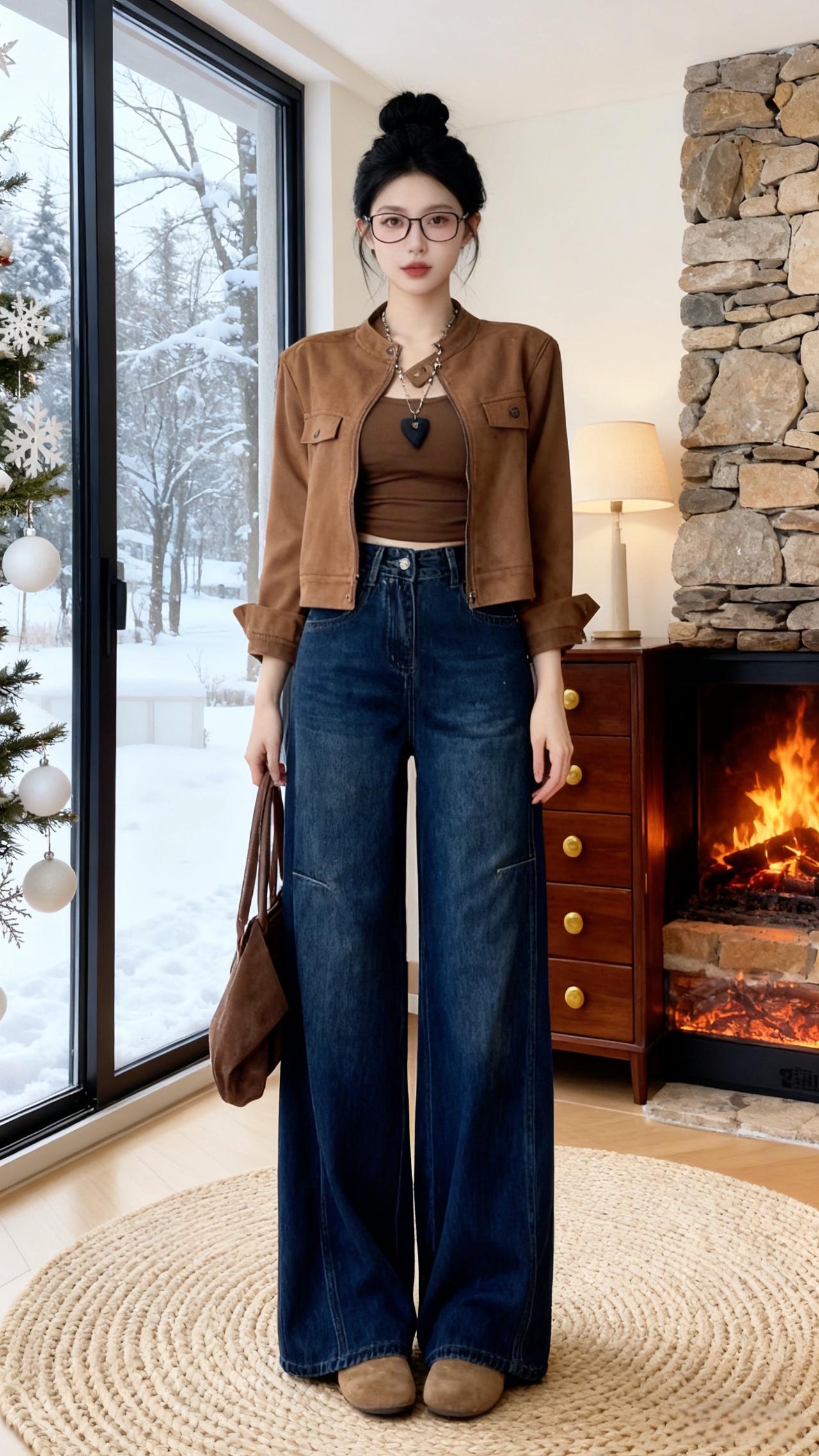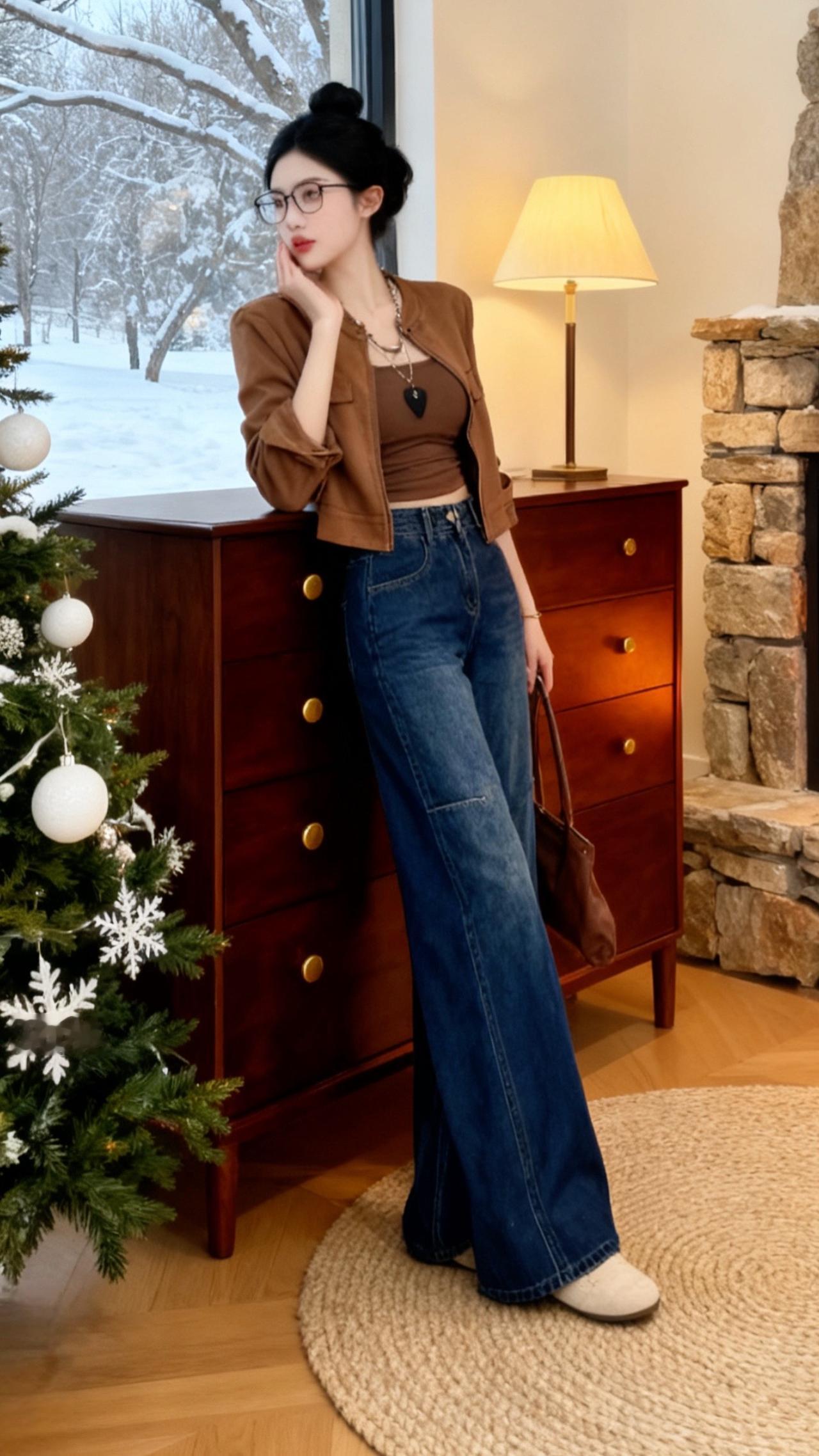 阔腿裤推荐 小个子穿搭 修饰腿型显腿长 高腰牛仔裤 通勤搭配