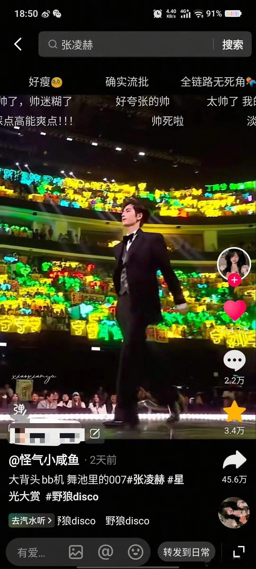 张凌赫星光大赏 抖🈶2个单人百万赞了这转发量好牛 不限流的话都能几百万吧,火火的很安心!