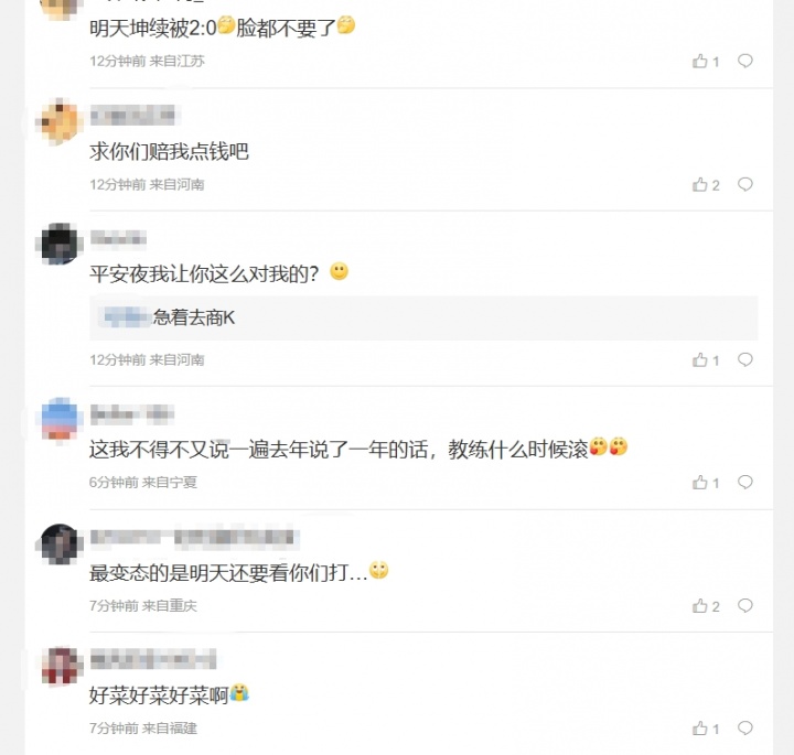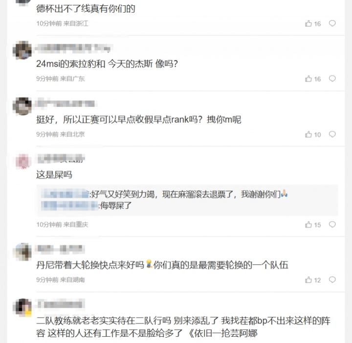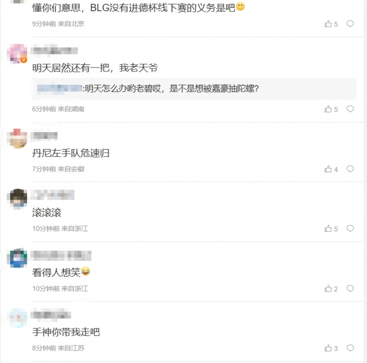 直播吧12月24日讯德杯小组赛第二阶段BLG零比二不敌JDG,赛后BLG粉丝在官博评论区表达不满。