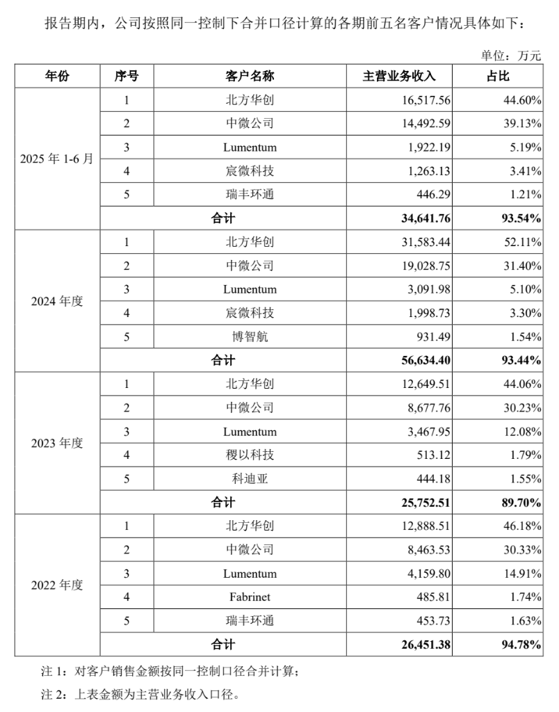 2025年上半年,公司实现营业收入3.73亿元,实现净利润6085.23万元。公司前五大客户销售占主营业务收入比例为93.54%,其中第一大客户北方华创和第二大客户中微公司,分别占公司主营业务收入44%和39%。