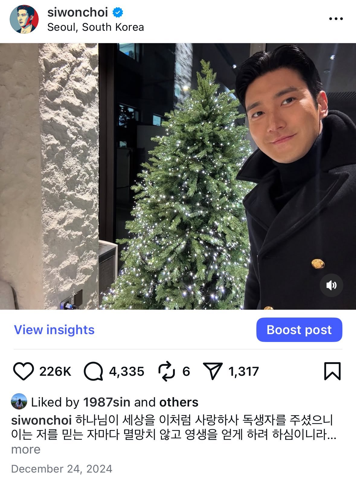 “CB百蓝_。251224崔始源 TW更新:很明显不同.Merry Christ