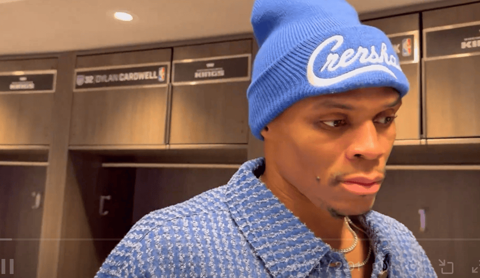 赛后,威少接受了记者采访,记者:你现在距离追平魔术师约翰逊,升至历史助攻榜第七,只差2次助攻。作为一个洛杉矶长大的孩子,能和他放在同一个话题里,对你意味着什么?