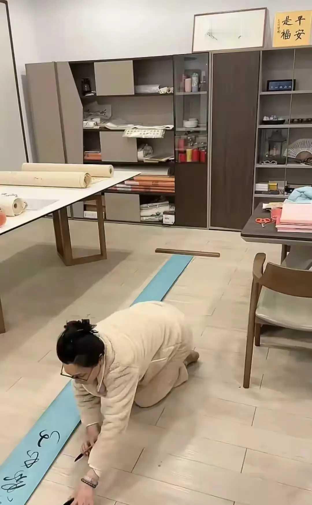 那些赞美“优雅永不过时”的人,我来泼点冷水。62岁的国家一级演员,穿着睡衣跪在地上写字? 这画面,你们真的看懂了吗? 这不是“优雅”,这是一个艺术家对自身近乎偏执的“管理”。 网友看到的是气定神闲。 我看到的,是62岁膝盖的硬度,是睡衣也盖不住的笔锋杀气。 她把练字变成了修行,甚至是一场对抗。 哪有什么岁月静好,不过是有人在跟自己较劲。 这哪是简单的修身养性? 这分明是一个角斗士,在生活的沙场上安静地磨自己的刀。 所谓“岁月不败美人”,真相往往是:美人从未向岁月缴械。 你觉得,这种极致的自律,是艺术家的光环,还是一种常人难以理解的孤独?