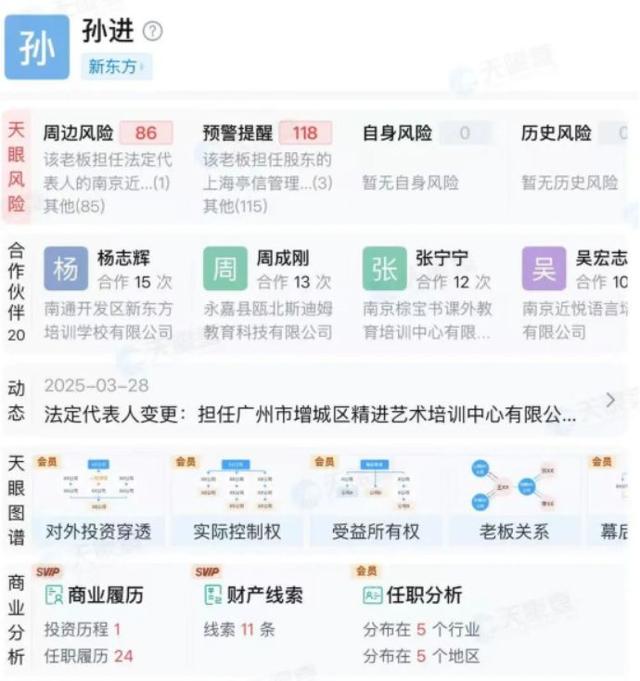 公开信息显示,孙进于2006年加入新东方,为新东方教育科技集团副总裁、广州学校校长。