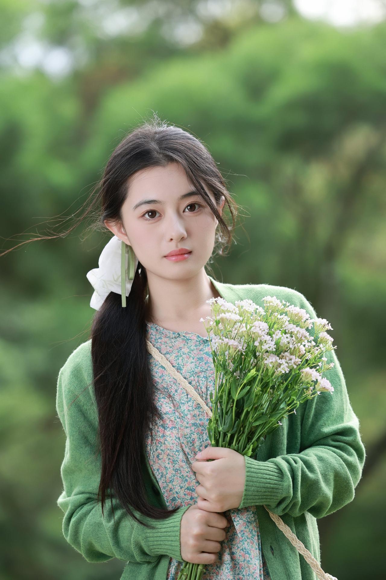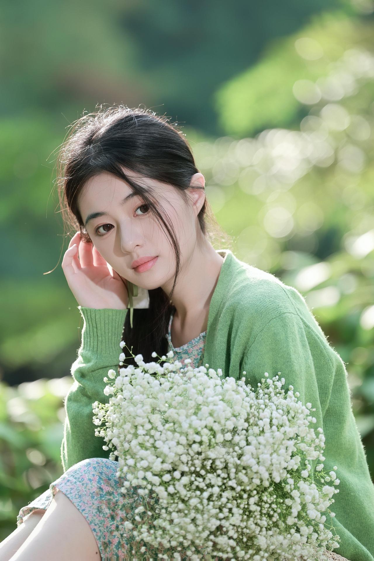 蝶恋花慢·青芜抱花影 作者Ⅰ朱珠 晴郊绿涨风初软,一缕云丝轻飏。 翠衫笼玉,碎花裁裙,白蝶结垂鬟上。 柔荑挽束,是星子千丛,素英凝香。 倚风凝睇,惹鬓边、几缕青丝飏。 坐看林阴碎影,把花团轻拥,眉峰微漾。 野芳如语,春心似絮,都入眉间心上。 山光澹荡,算这般光景,最宜闲赏。 漫将花事,寄流年、总温柔相。蝶恋花 蝶恋花词牌