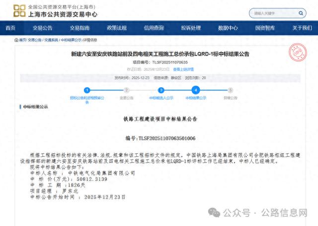 新建六安至安庆铁路站前及四电相关工程施工总价承包中标结果公示