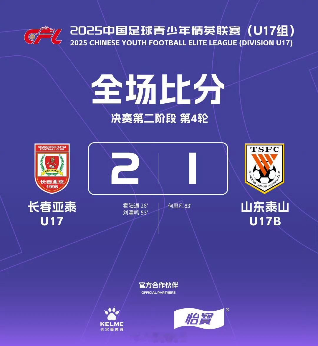 2025中国足球青少年精英联赛(U17组)决赛第二阶段第4轮赛果。
