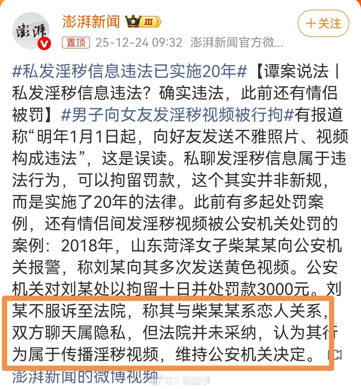 连是不是恋爱关系都没搞清楚,就开始起话题山东菏泽的这个案子,所谓恋爱关系只是男子自己单方面的辩解,并没有证据证实这种关系到了女子的同意和认可。恰恰相反的是,这个案子是女子柴某某自己向公安机关报警后,公安机关才立案侦查进行的处罚!而男子自称的恋爱关系压根就不成立,他发淫秽信息,很显然就是专门为了骚扰而进行的传播。而他在被举报被抓之后,只不过是拿所谓的恋爱关系进行开脱而已。这怎么骗得了办案机关?