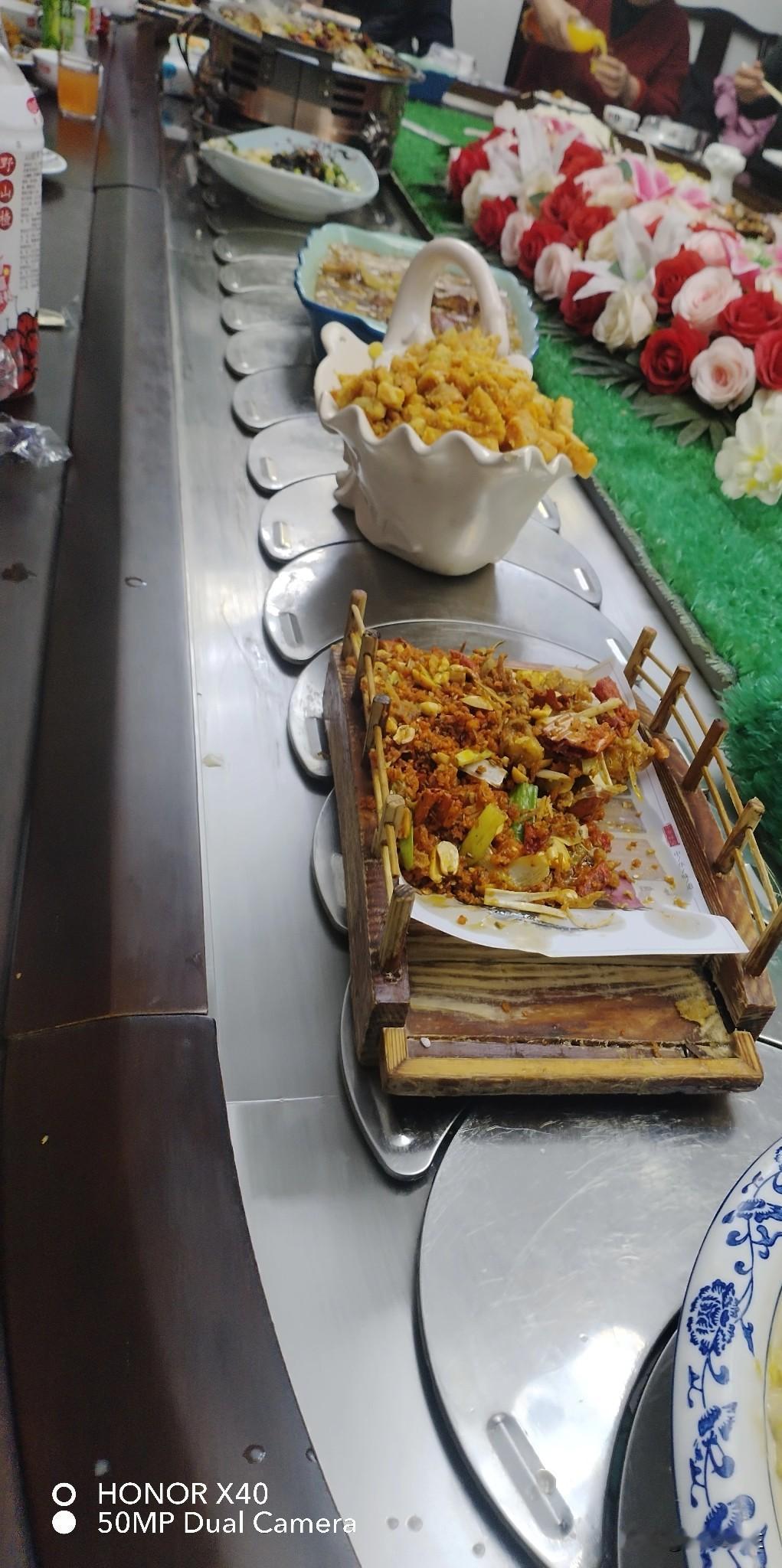 今天在饭店吃饭,一大桌子有20多人,公公婆婆也接来了。饭桌能够转动,菜量也很大,吃吃喝喝一会就过去了两个小时,后来各忙各的,孩子们回到我们家,家里各种接亲的道具准备就绪,不知道怎么为难新郎,挺有意思。抓紧时间睡会。