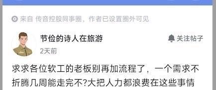 传音那位工程师的帖子,我反复看了三遍。 一个简单的需求,走了五周流程。 这仅仅是效率问题吗? 不,这是一场研发热血与官僚冷墙的荒诞博弈。 你看看那些数字:平均5个部门,23天。 一个功能还没诞生,30%的精力已耗在“求爷爷告奶奶”的沟通上。 某些技术规划部门,活成了“数字时代的衙门”——只收“作业”,不解决实际问题。 这难道不是最大的内耗? 我们引以为傲的敏捷开发,最后卡在了最不敏捷的流程里。 当流程本身成为KPI,创新就成了代价。 那句“我们正在用最敏捷的代码,跑最封建的流程”,精准得让人心痛。 所以,流程,到底在为谁服务? 是为产品的极致,还是为部门的“存在感”辩护?