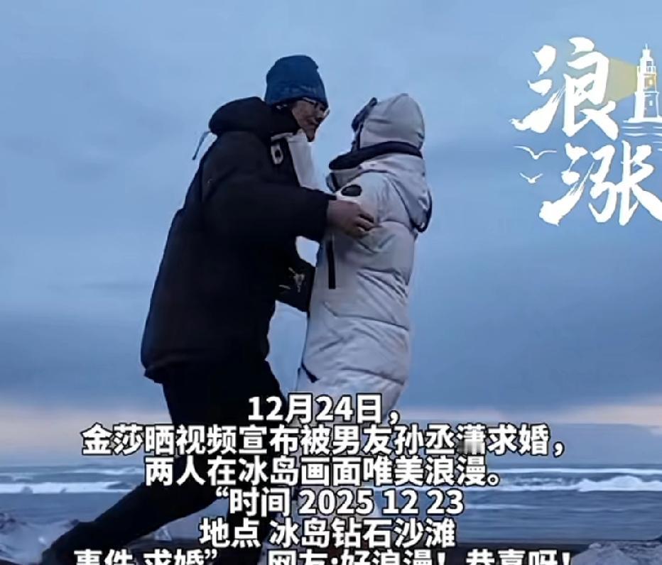 42岁金莎获00后男友求婚:17岁年龄差,是爱情自由还是社会争议? 近日,42岁的金莎官宣在冰岛被男友孙丞潇求婚,此消息瞬间在网络上掀起轩然大波。其男友出生于2000年,二人年龄相差17岁,这样的组合引发了广泛的讨论。 网友们纷纷留言“好浪漫!恭喜!”,但也有人对他们过大的年龄差距表示质疑。尽管冰岛浪漫的氛围为求婚增添了梦幻色彩,却掩盖不了现实中的争议:姐弟恋真的能够跨越代沟吗? 爱情本就没有界限,然而17岁的年龄差距无疑挑战了传统观念。有人赞赏这是勇敢追求爱情的表现,也有人担忧他们在未来的相处中会面临诸多问题。金莎的选择,反映出社会在年龄议题上的矛盾态度。 最终,这段感情是否幸福,只有当事人自己清楚。但这桩婚事无疑成为了公众热议的新话题:你会祝福这样的爱情吗? 金莎