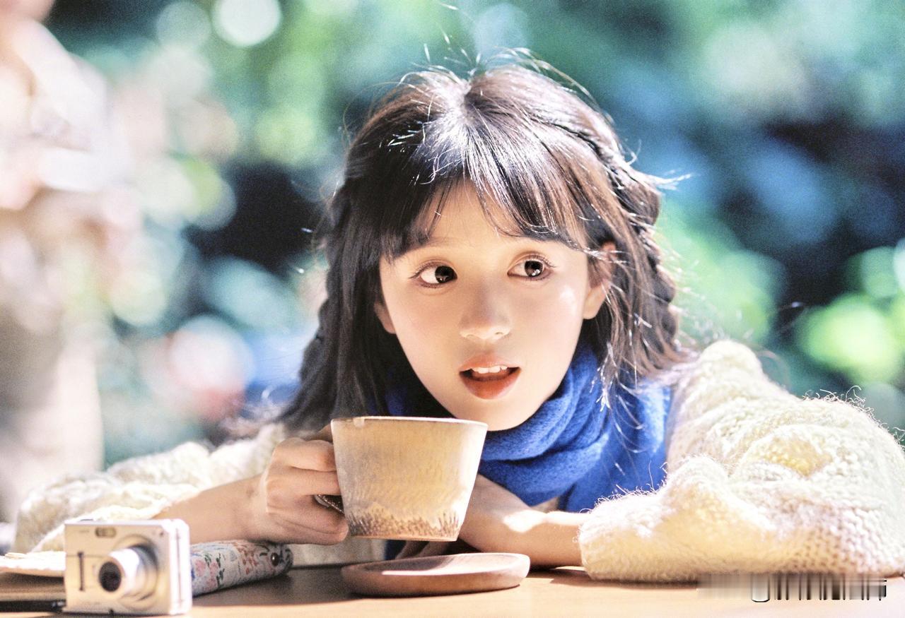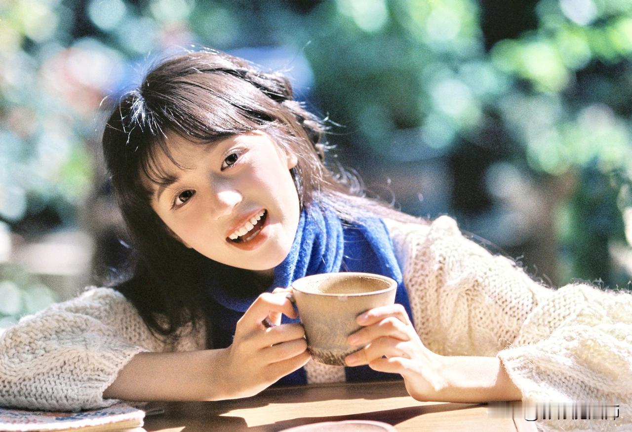 阳光明媚,女孩在咖啡馆享受美好时光。
