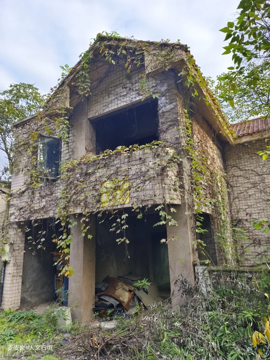 这座老别墅群的破败,既是一个时代经济泡沫的隐喻,更像一面镜子:我们总忙着追逐新事物,却常常忘了回头看看那些被时光抛下的存在。离开桃都山庄时,夕阳正将最后一缕金光洒向最高的那栋别墅。残破的玻璃窗反射出耀眼的橙红色,恍若一场无声的谢幕。