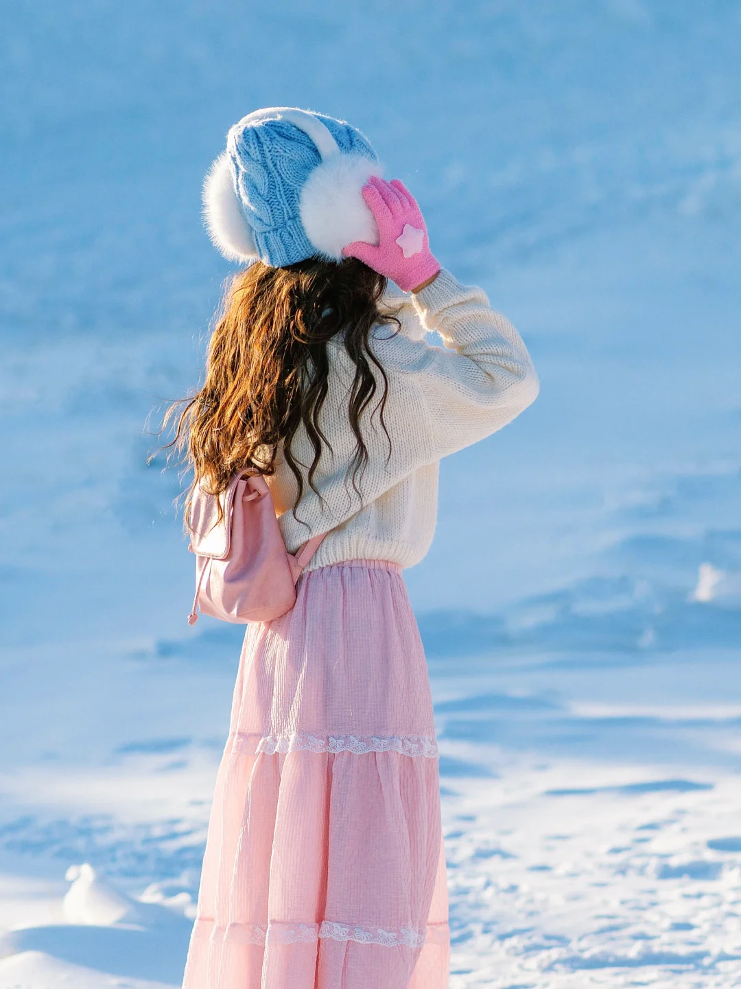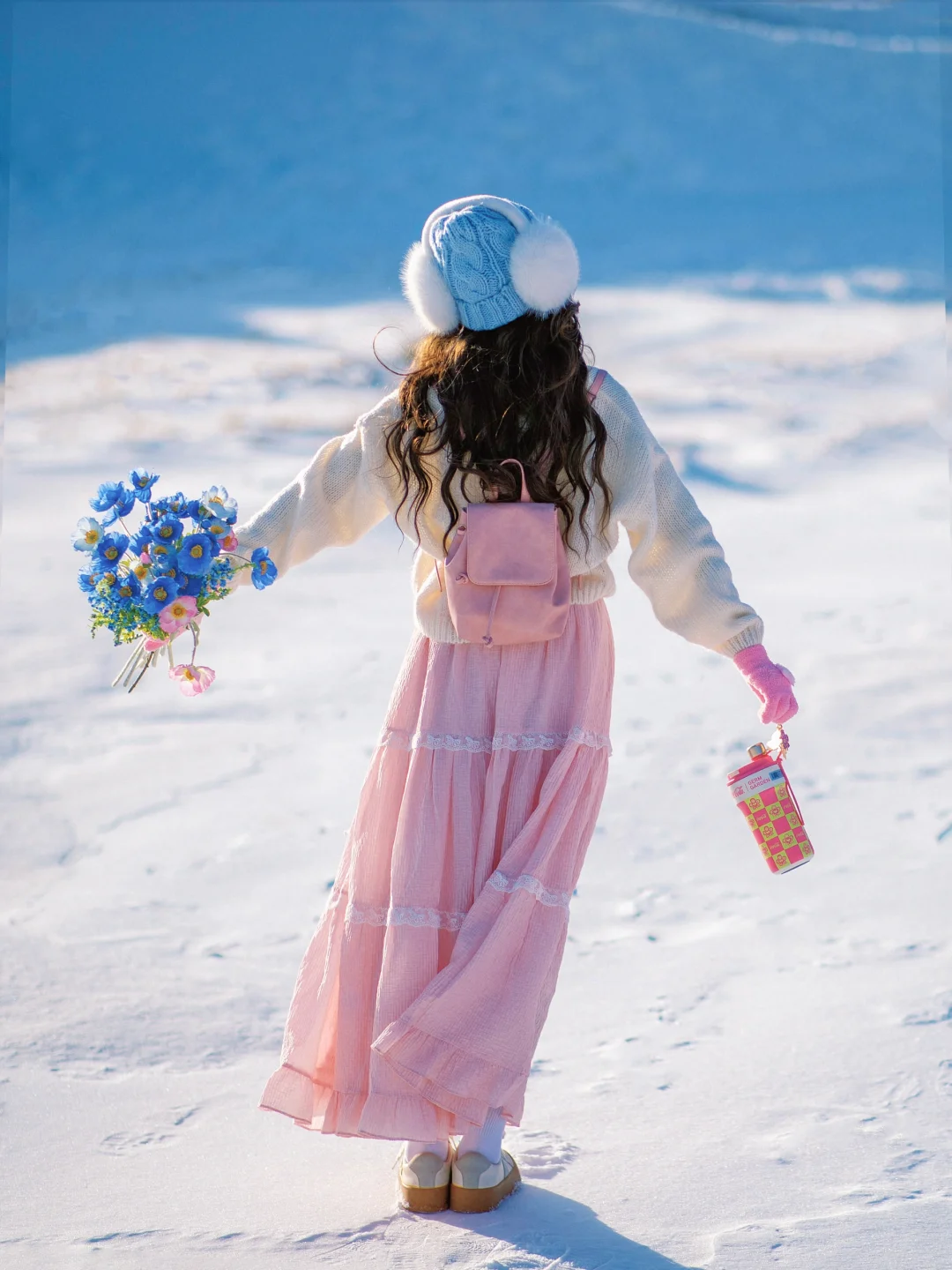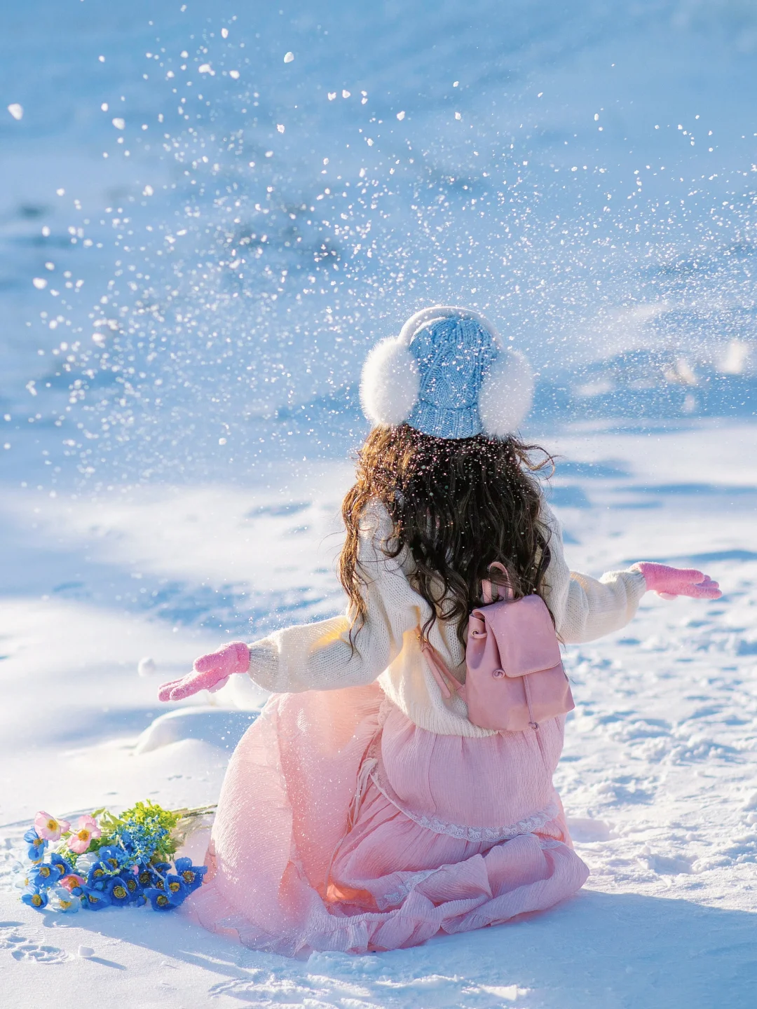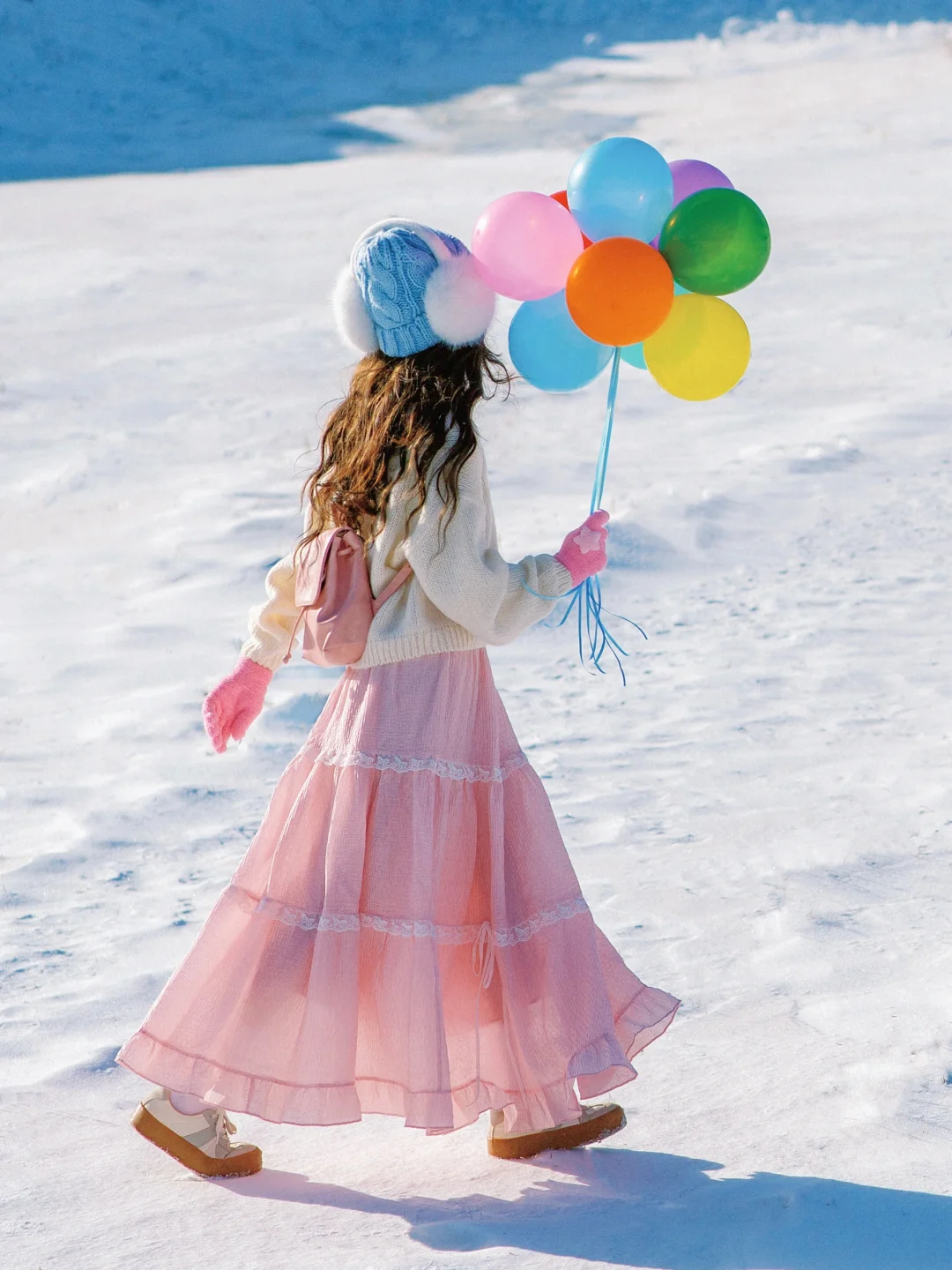 纯净的雪地搭配上彩色气球,太好拍啦~