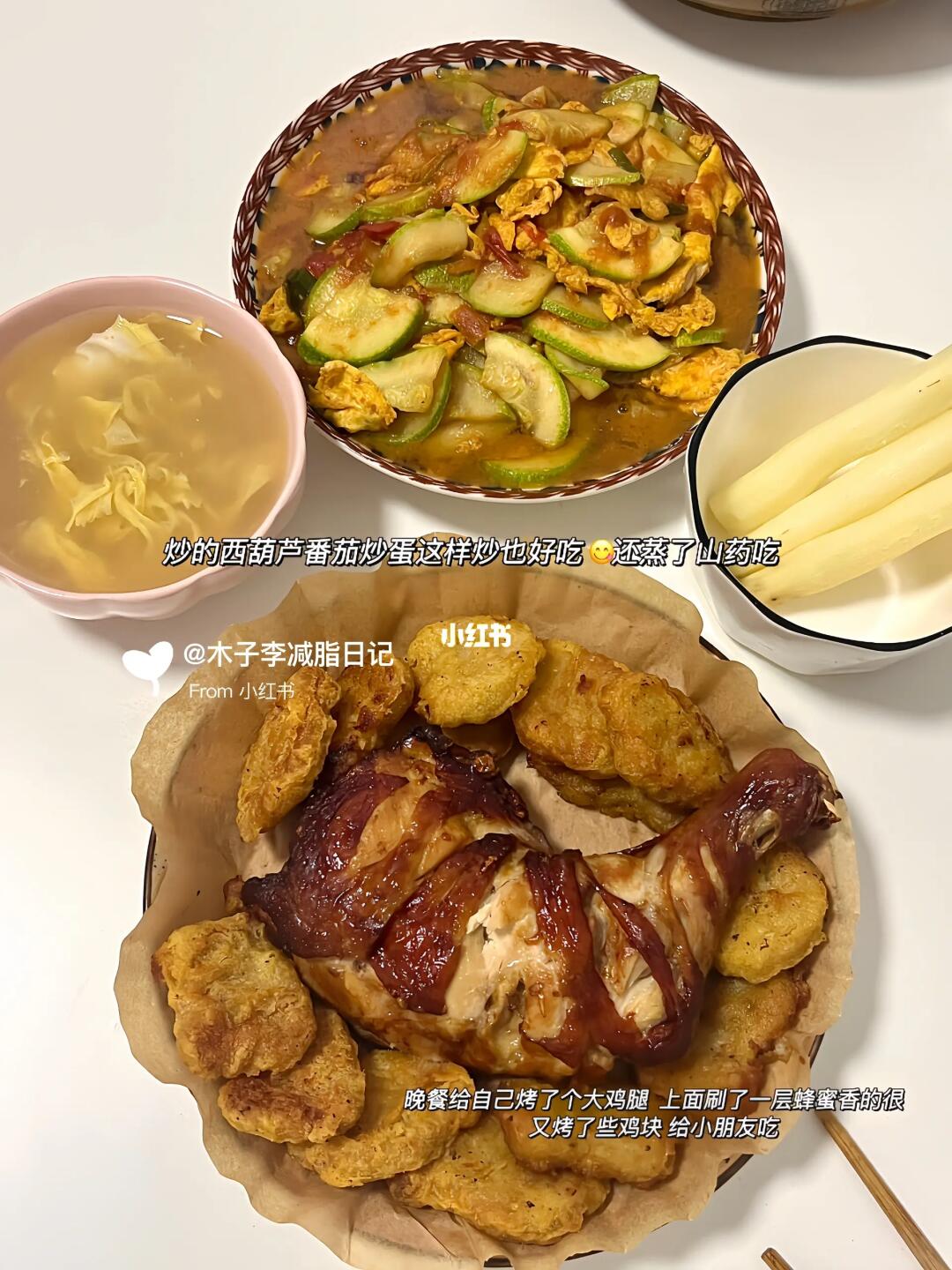 原体重:120斤 已↓31斤 现重:89斤 - 🥣早餐:香蕉法式吐司 拿铁 🥣午餐:荞麦面 白开水 🥣晚餐:烤鸡腿 西葫芦番茄🍅炒鸡蛋 蒸山药 、 💧喝水2000ml 🏋️运动:🈚 - 法式吐司好好吃 明天还要吃 晚上烤的大鸡腿也很nice