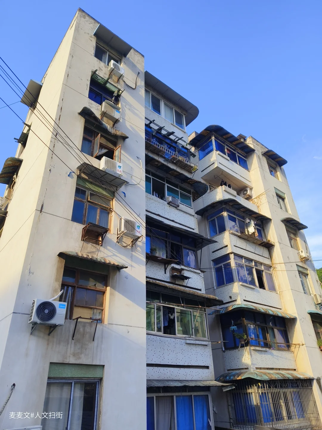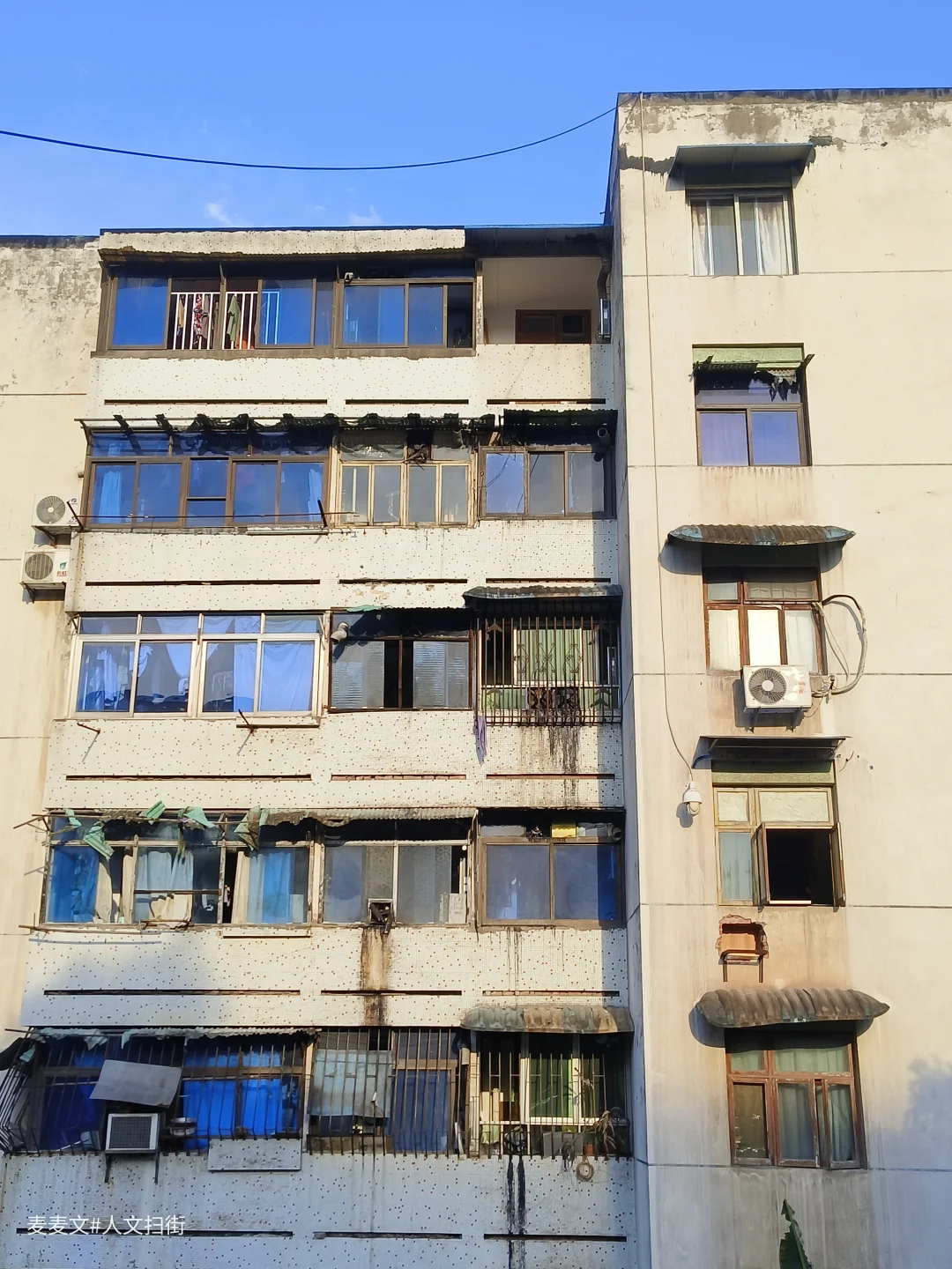 而那幢90年代的长航汽车员工宿舍楼,像是时光的固执守望者。楼体斑驳,空调外机凌乱地挂着,像是给它添了几块补丁。蓝色玻璃窗阳台被生活填满,晾晒的衣物、摆放的杂物,皆是烟火气的注脚。楼里依旧住满了人,清晨的匆忙出门,夜晚的暖黄灯光,都诉说着平凡又真实的生活。