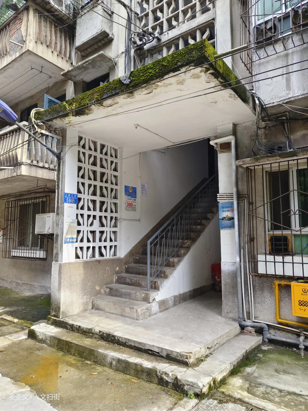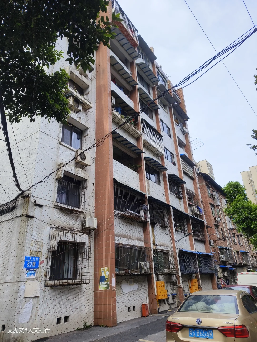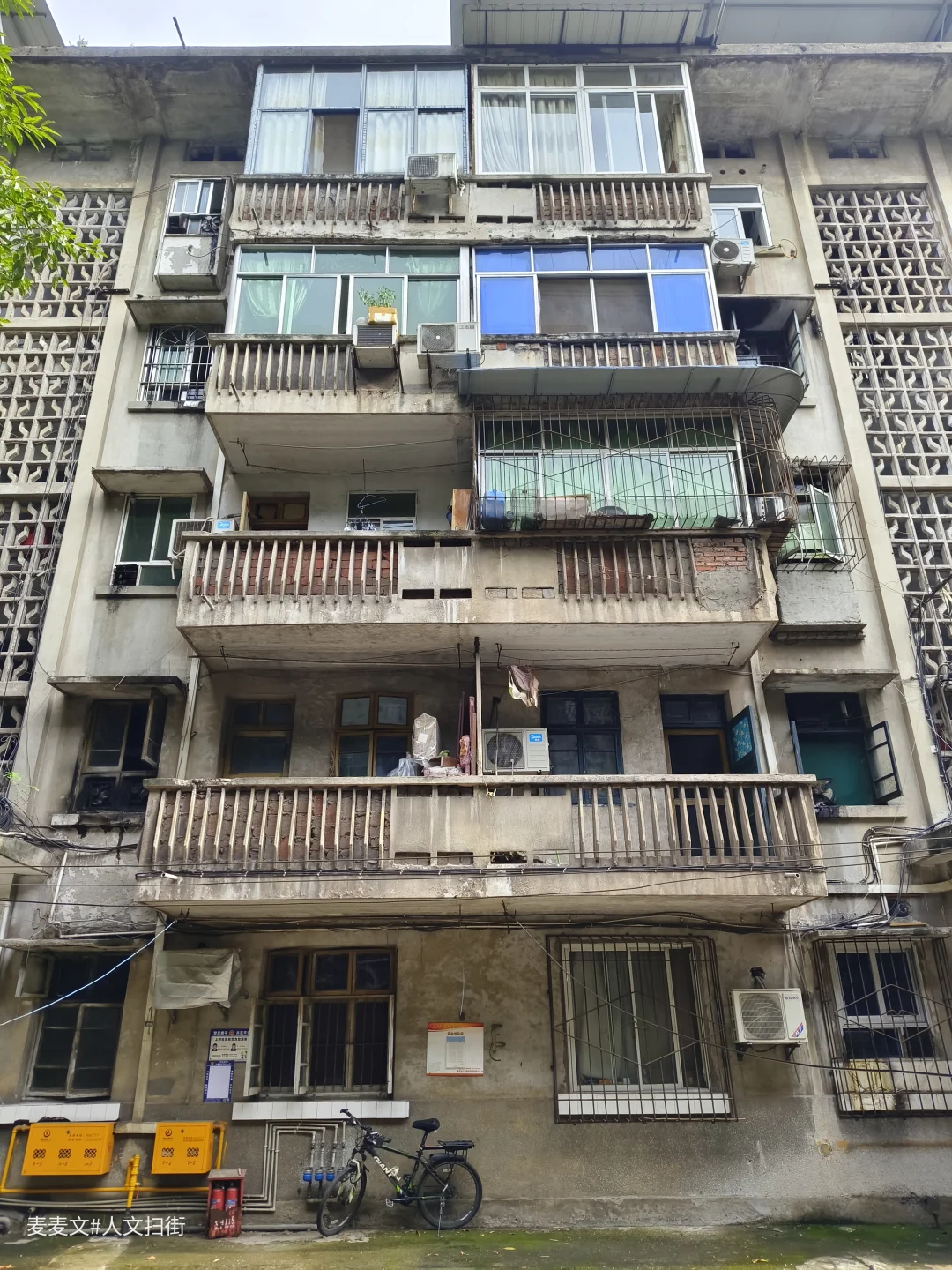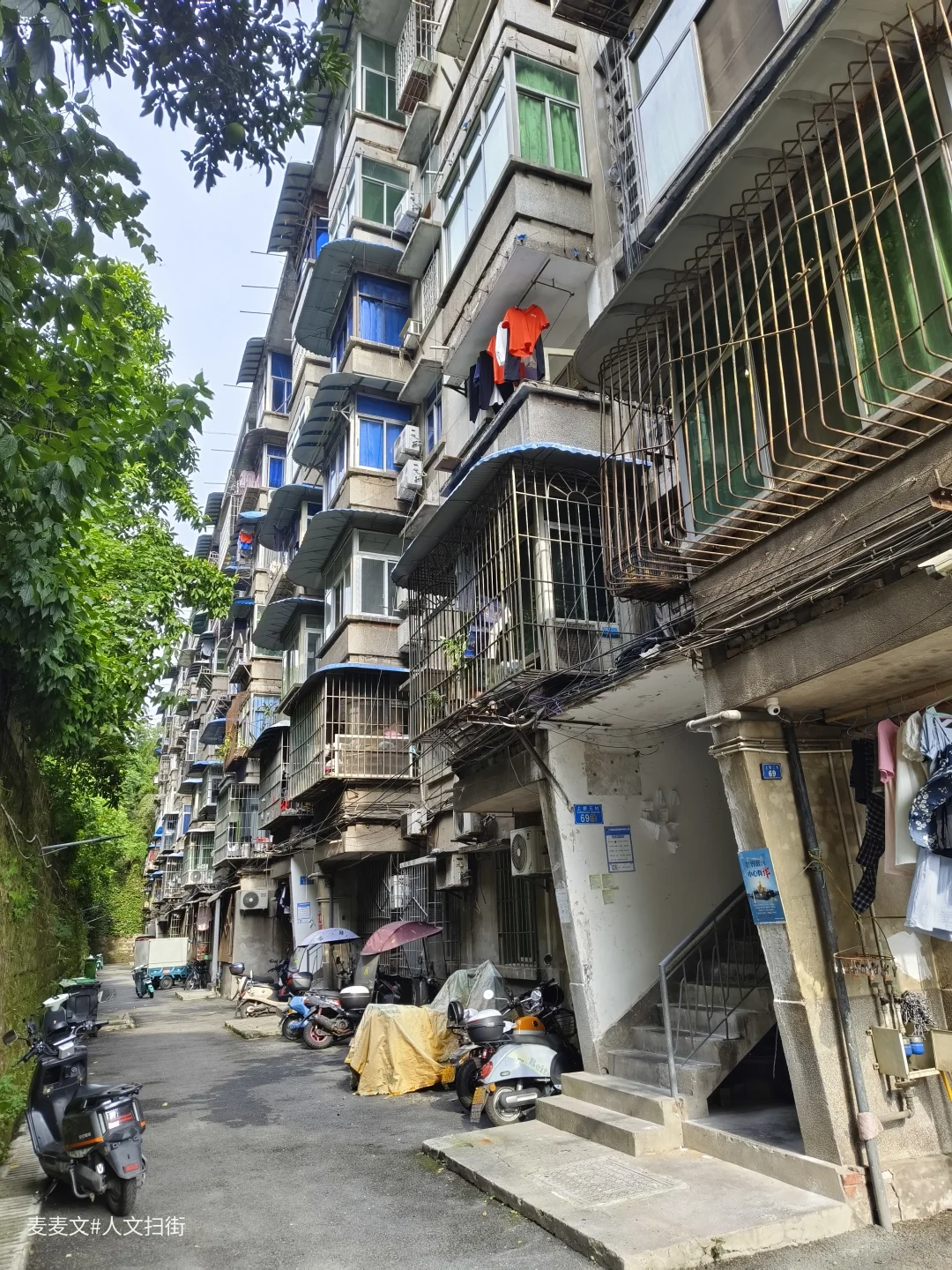 窗户上的铁栅栏、随意搭晒的衣物,还有那略显杂乱却充满温情的电线,每一处都是生活的印记。楼与楼之间的小道上,停放着几辆汽车,旁边点缀着绿植,给老旧的家属区添了几分生机。