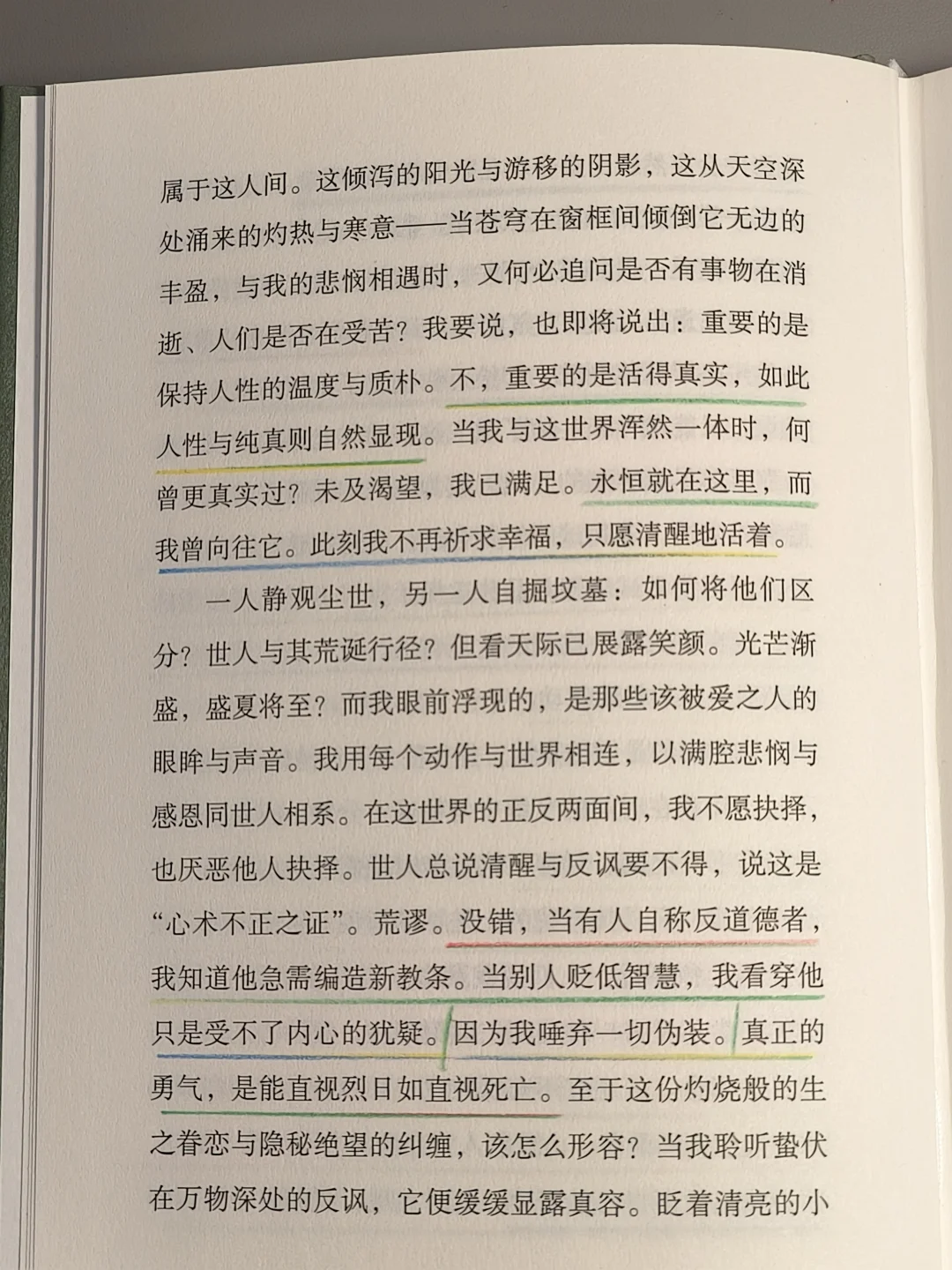 人性那点复杂、对人生的追问,都被他挖得透透的。好多话,都是自己心里憋着想说、却死活说不出来的,那些对生活的迷茫、对意义的追问,加缪笔下都有,像帮自己把没说出口的话、没找到的答案,一股脑儿倒了出来。