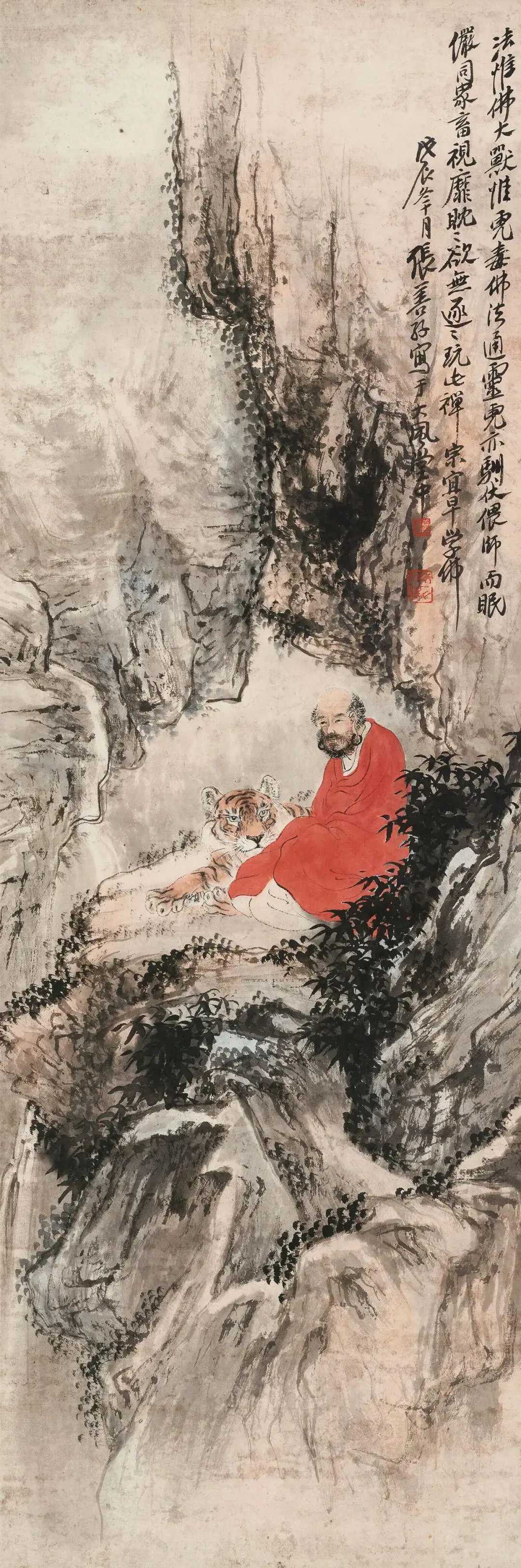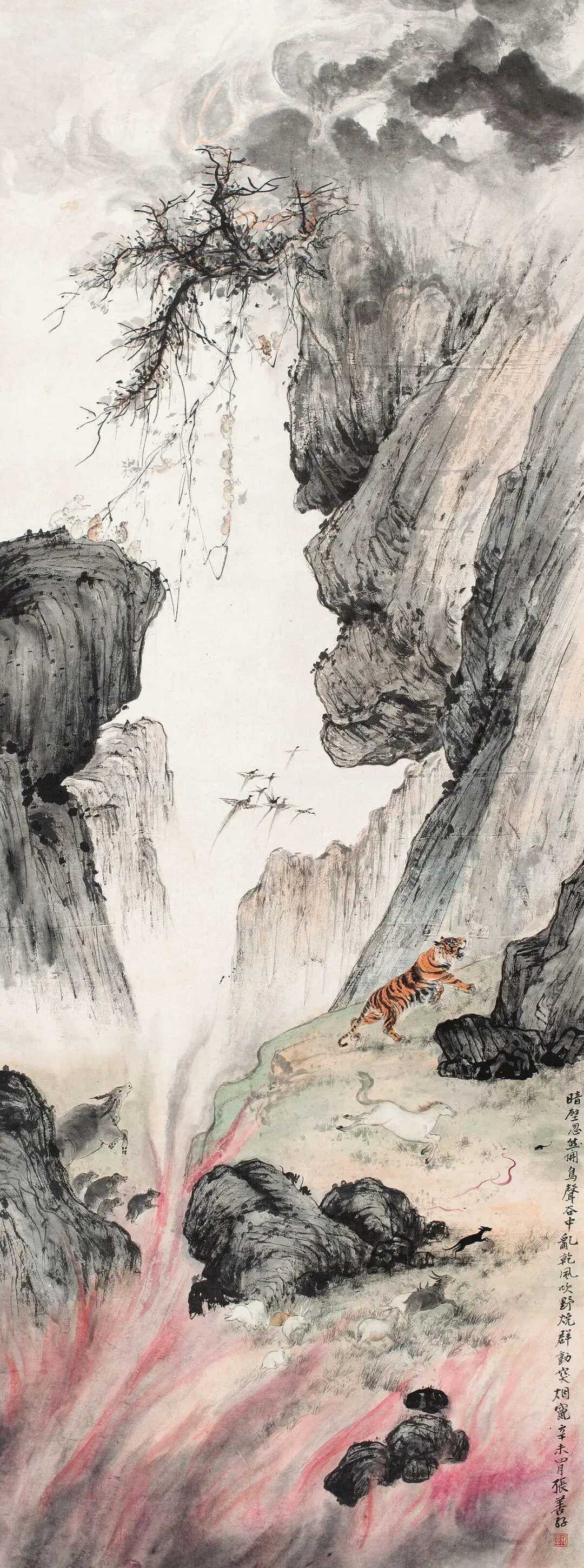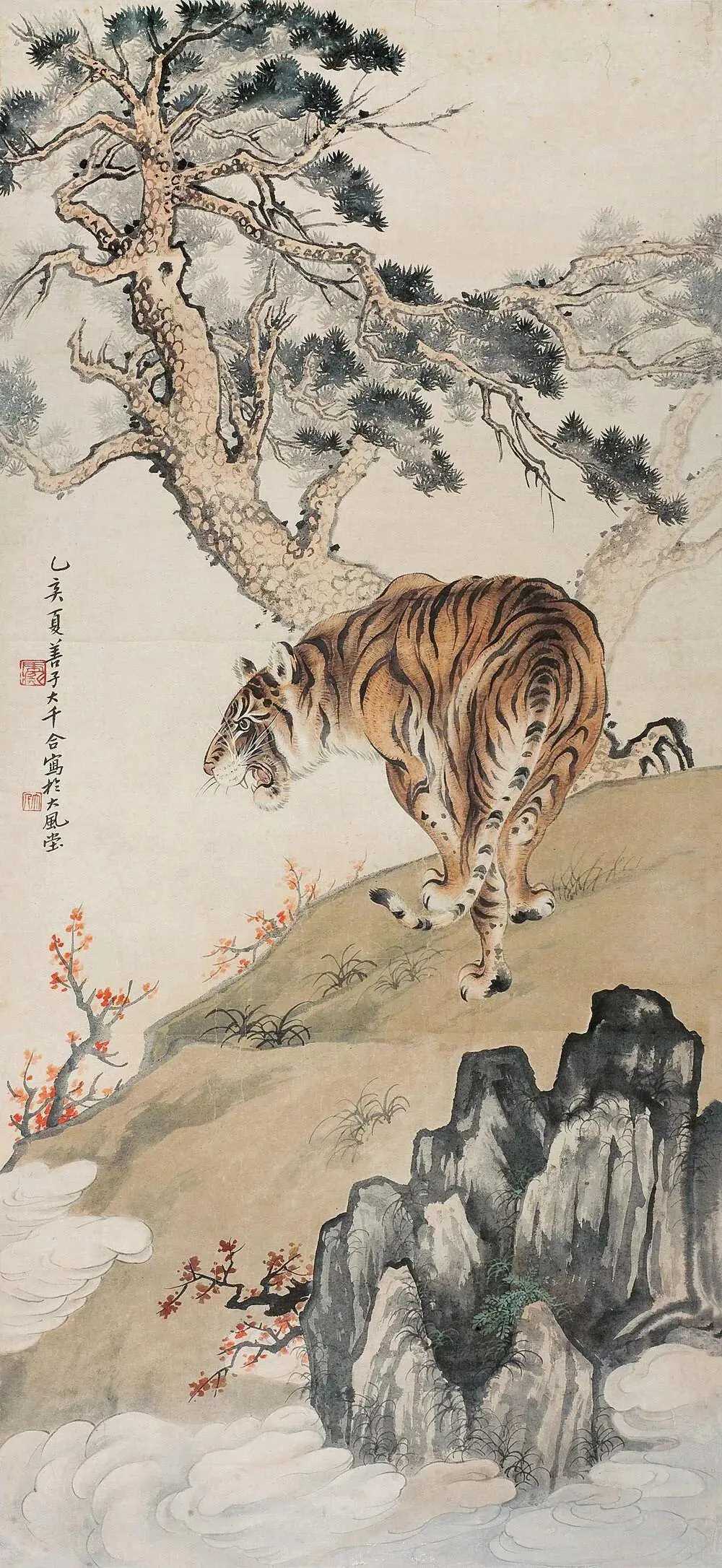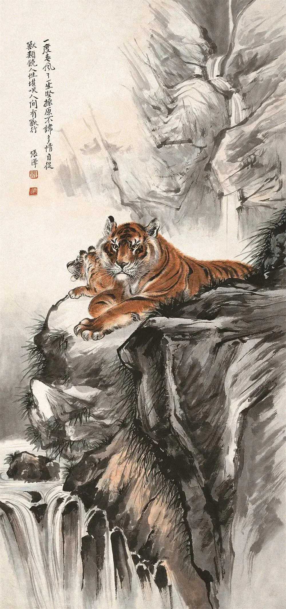 张善子(1882年07月12日-1940年10月20日),名泽,原名正兰,字善 ,一作善之,又作善孖,号虎痴,四川内江人。现代名画家,张大千的二哥,画虎大师。张善子自幼好学,性情刚毅,童年从祖母习画,稍长游侠仗义,广交友人。善山水、花卉、走兽,尤精画虎,豢虎以供写生,写虎各种形态。作品精妙沉雄,尤著神韵。张善子与张大千共定“大风堂”画室名,为大风堂画派创始者之一。遇见艺术这就是中国风