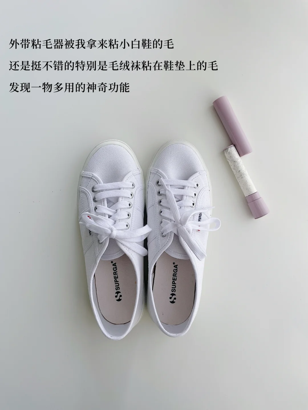 这个是我发现的好方法。冬天穿鞋子的鞋子容易沾上袜子的绒毛,白色还好,但是黑色的绒毛很明显,我用这个随身带粘毛器能去除绒毛,可以用在衣服上,也当然可以用在鞋子上。