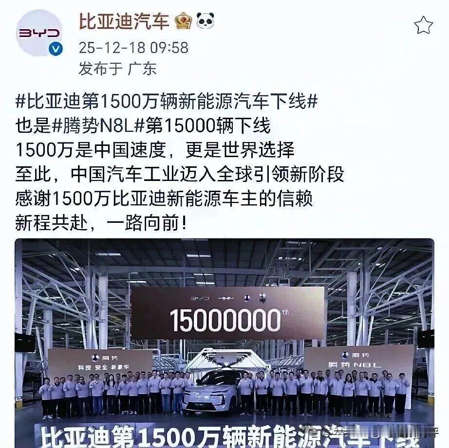 比亚迪第1500万辆下线,真正的“中国速度”来了!