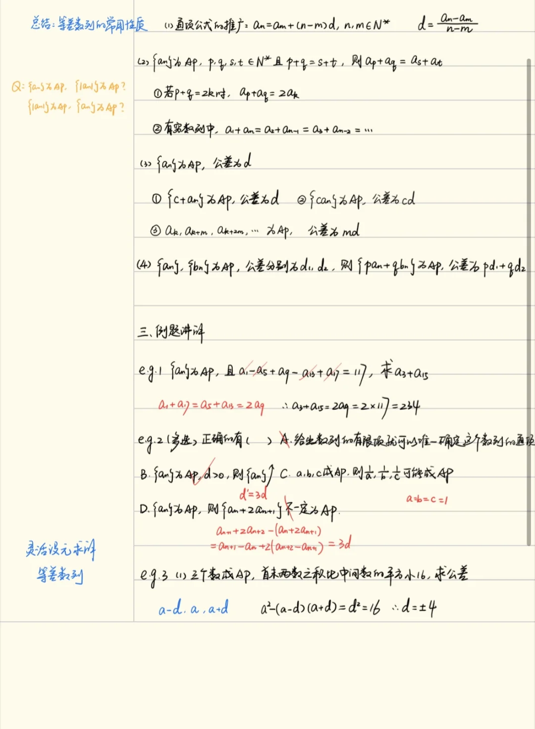更新一篇教案,等差数列的性质,一开学从这里开始讲~ 好久没更新教学的相关内容了,还是继续坚持下去吧,下学期的教学进度和难度让我很紧张… 还是喜欢把教案写在本子上,感觉字更好看,写在平板上更容易保存,所以还在摸索怎么写更美观,可能需要换个软件改进一下,如果大家有好用的手写软件请推荐一下![喝奶茶R]