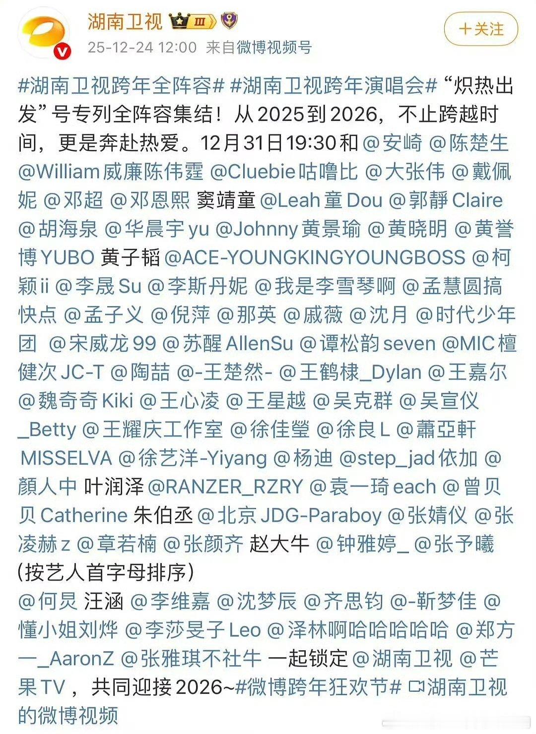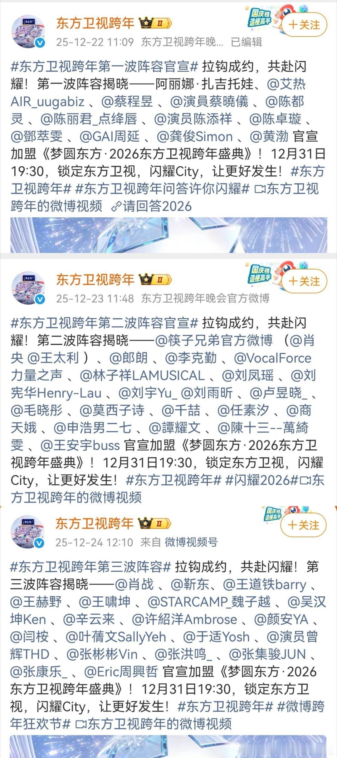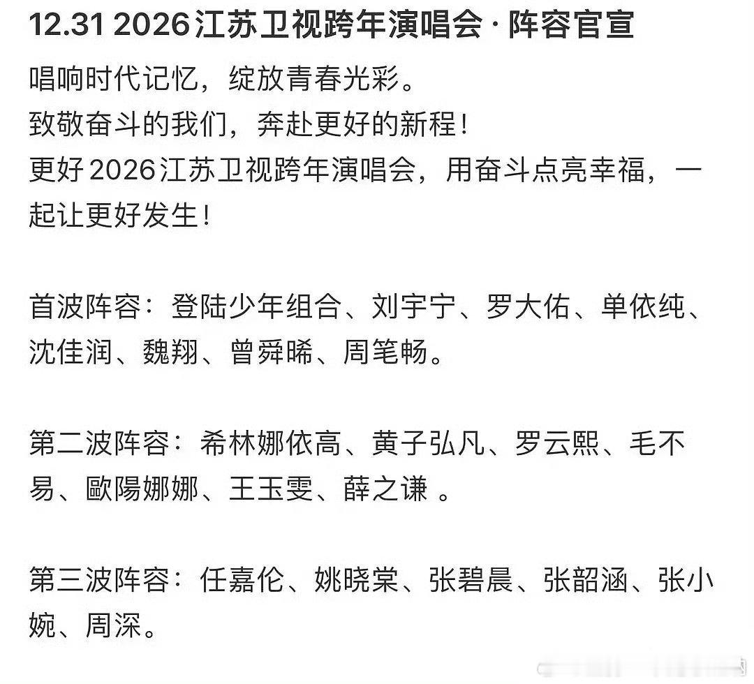 浙江、湖南、东方、江苏四大卫视跨年晚会全阵容你在哪儿过跨年呢
