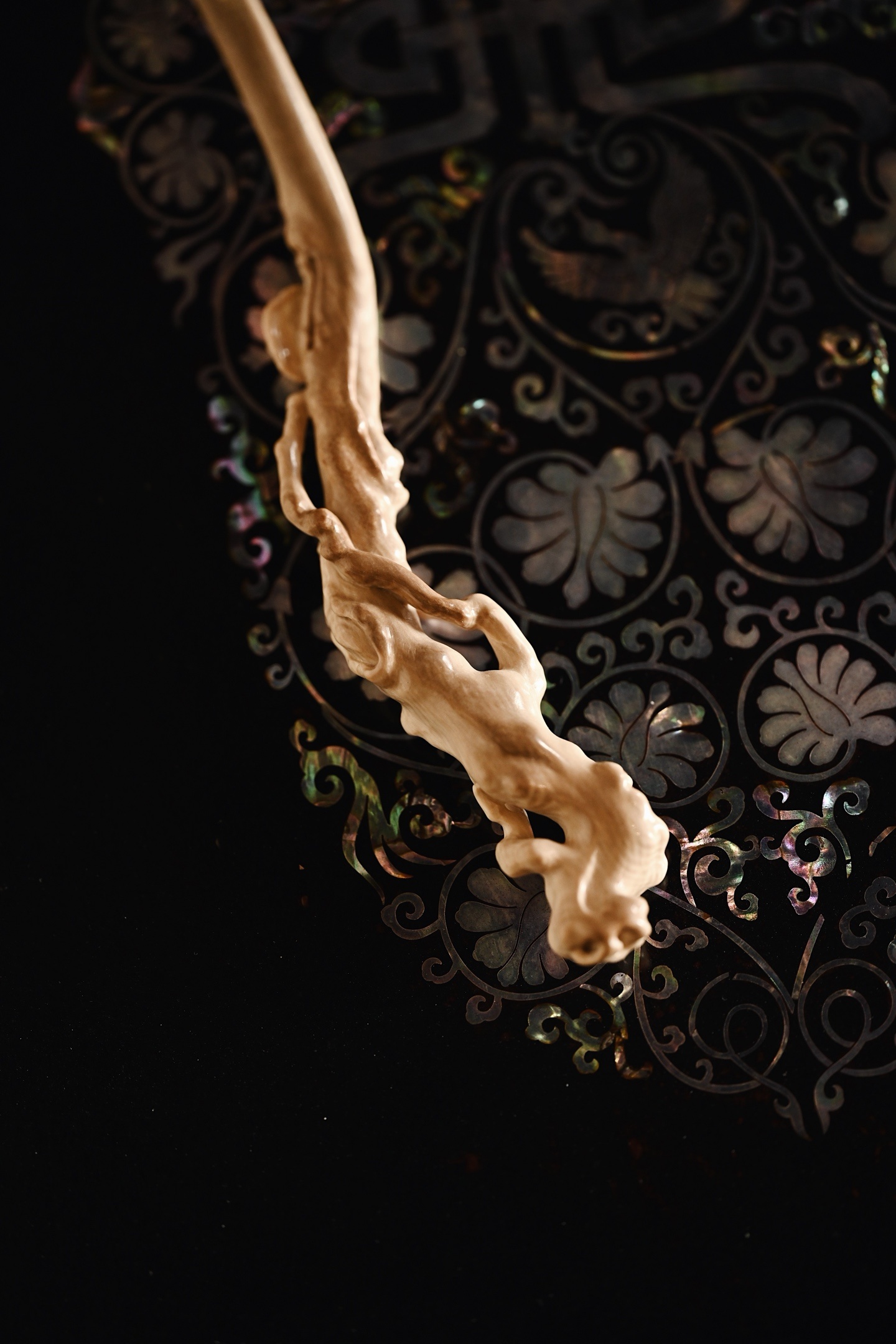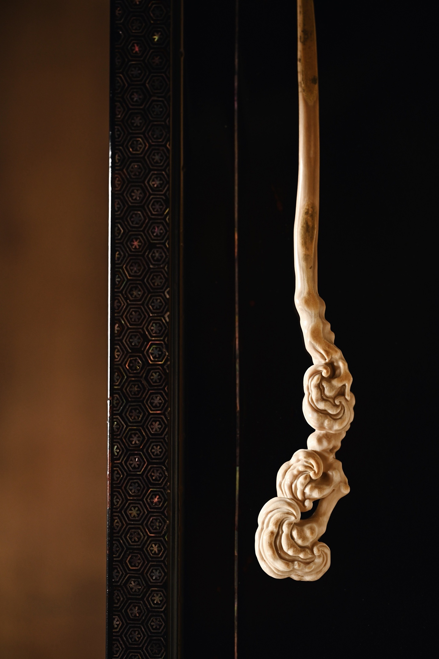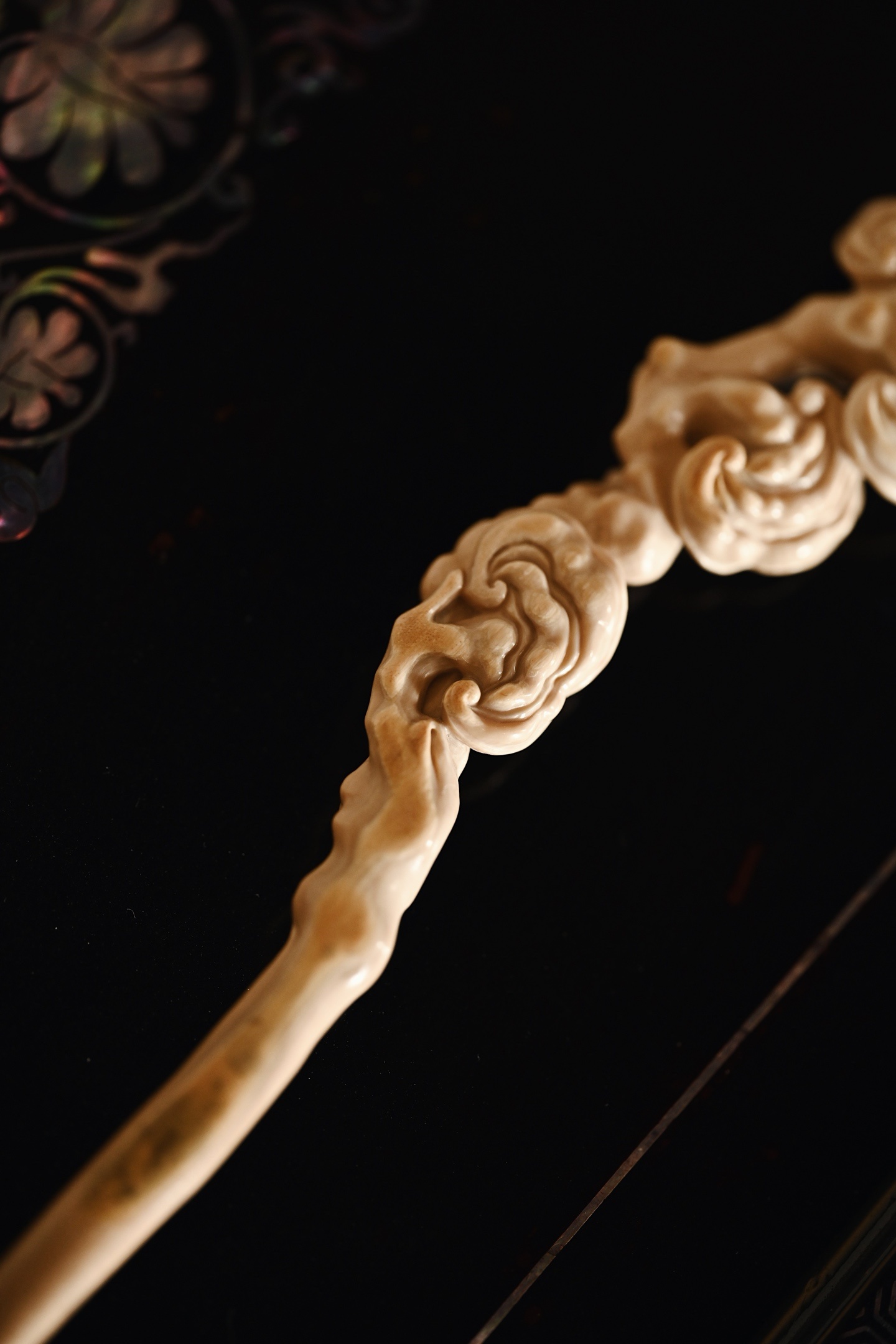 猛犸 | 灵芝 发簪 择取咖料,色泽沉稳,形制简约,雕刻灵芝层叠分明,发簪纤长玲