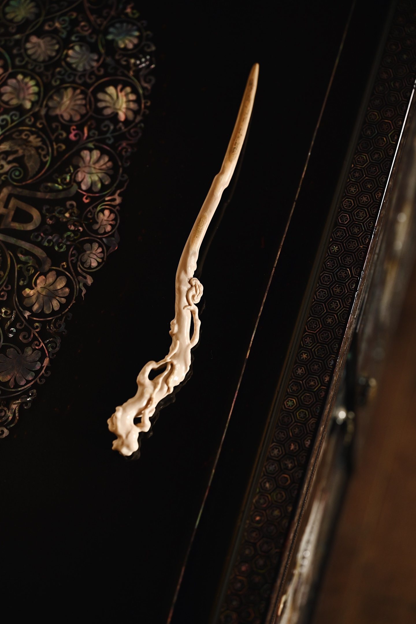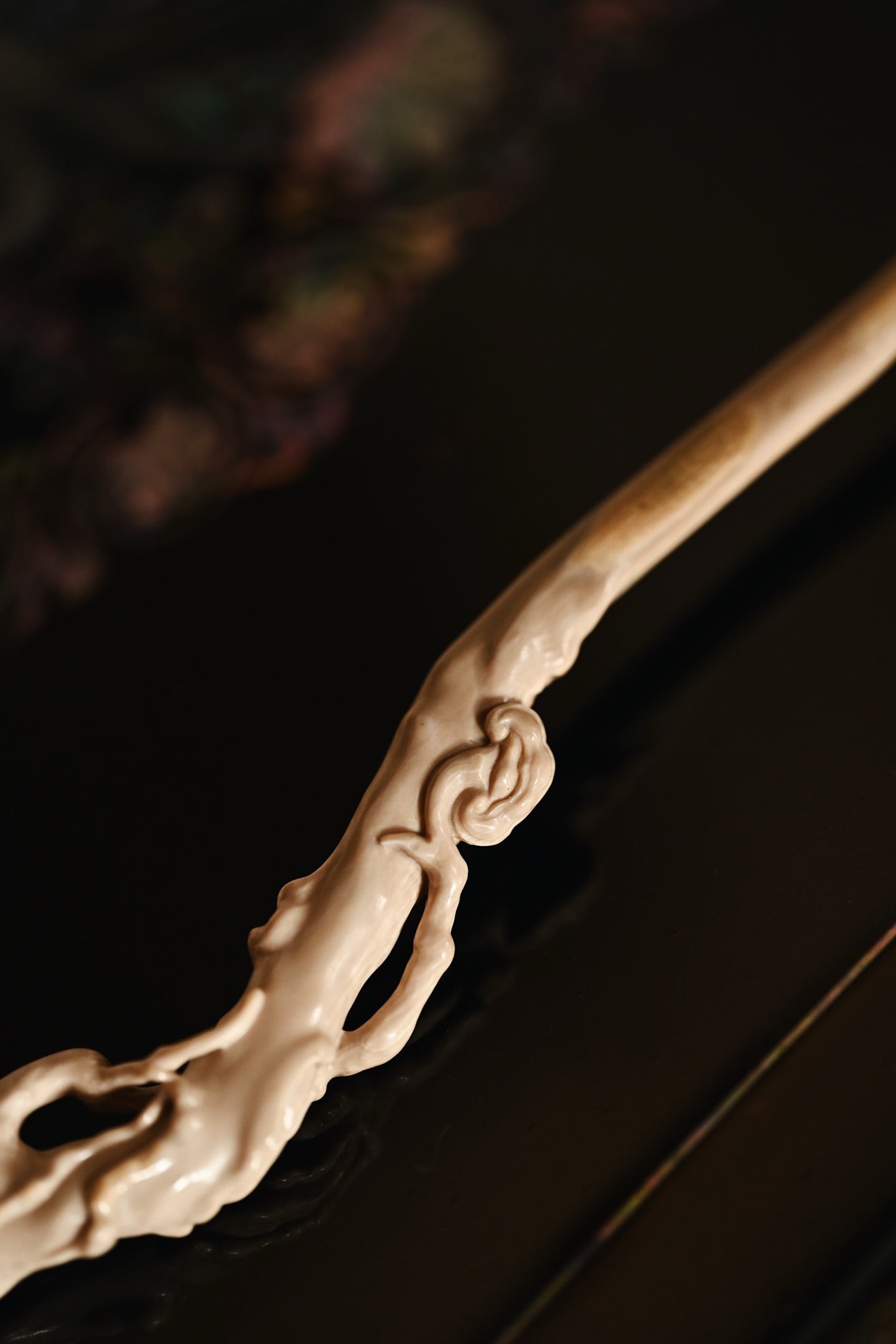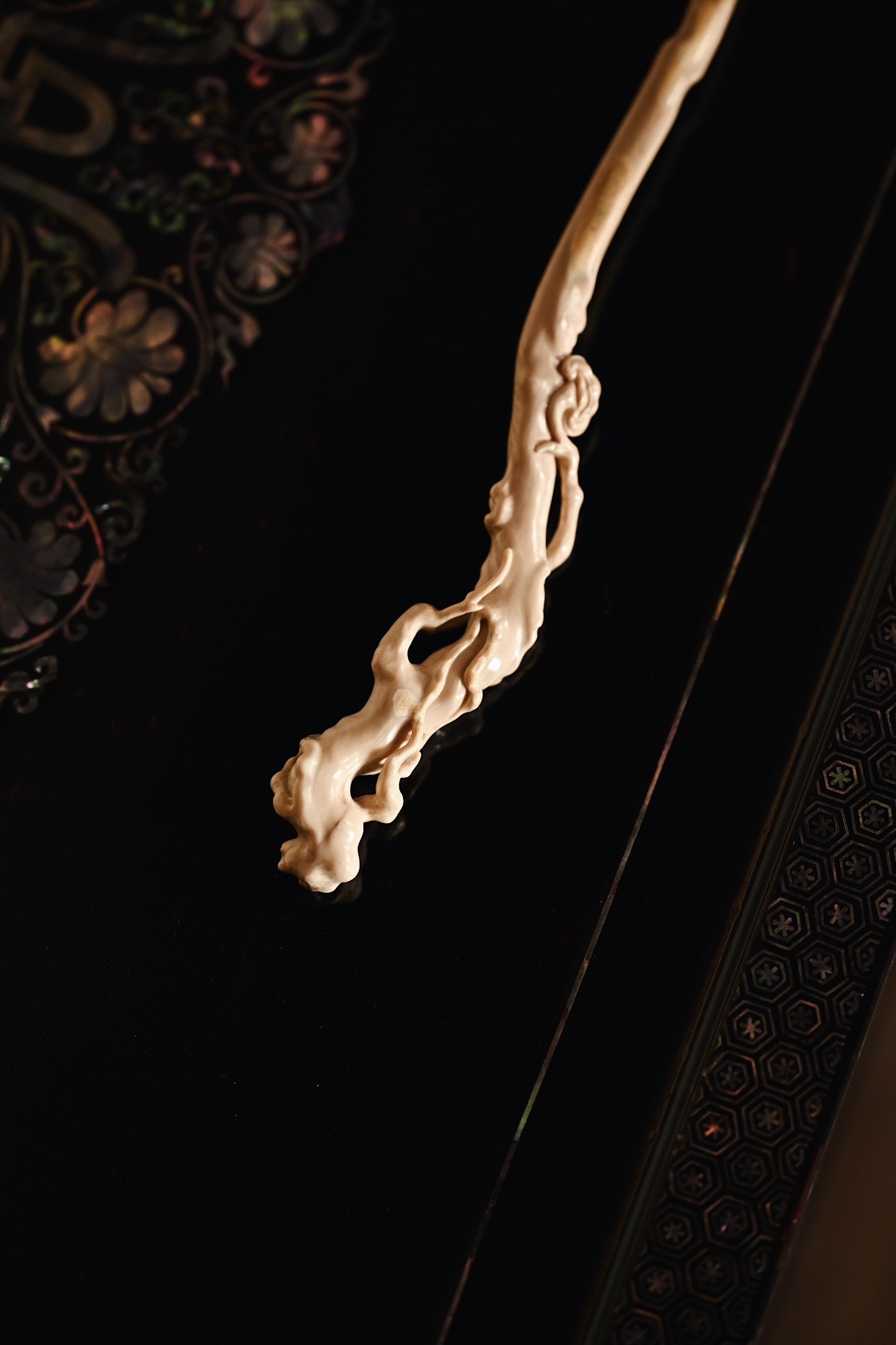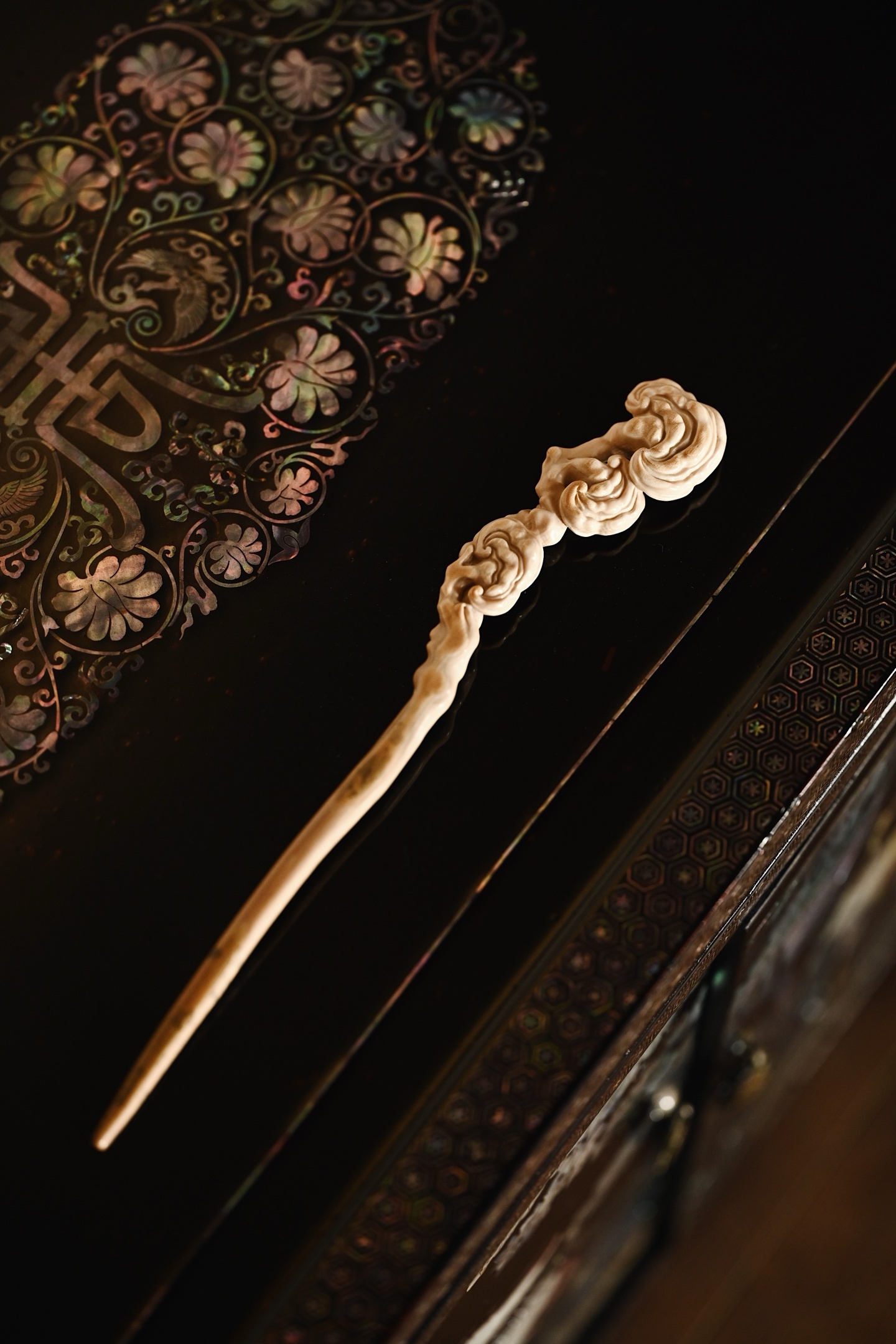 猛犸 | 灵芝 发簪 择取咖料,色泽沉稳,形制简约,雕刻灵芝层叠分明,发簪纤长玲