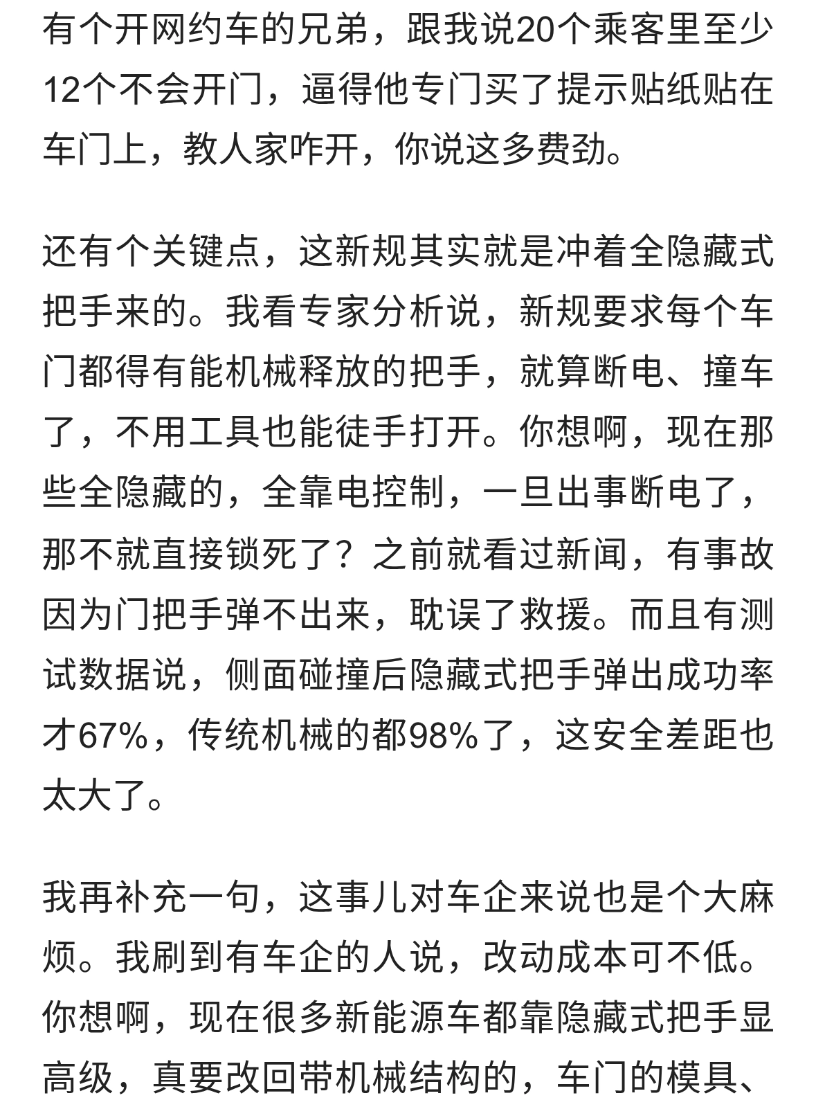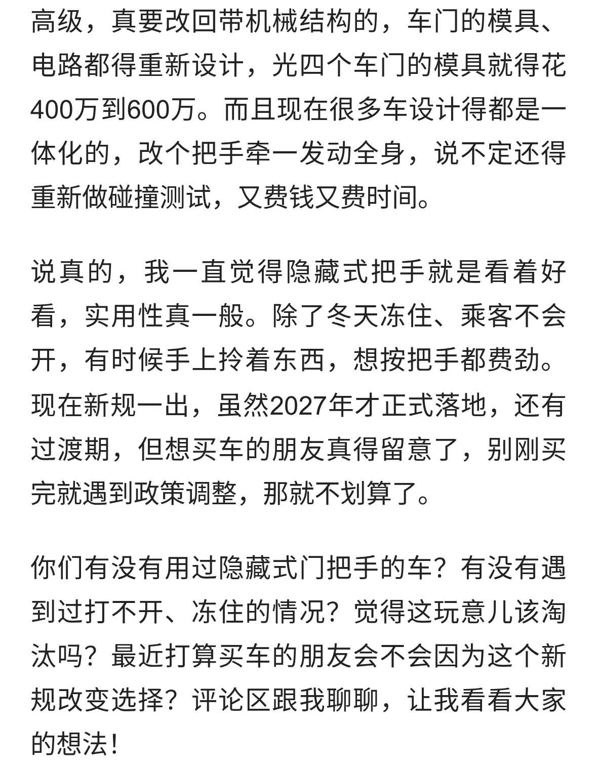 买新能源车的注意了!全隐藏式门把手“退场”倒计时!车企都头疼