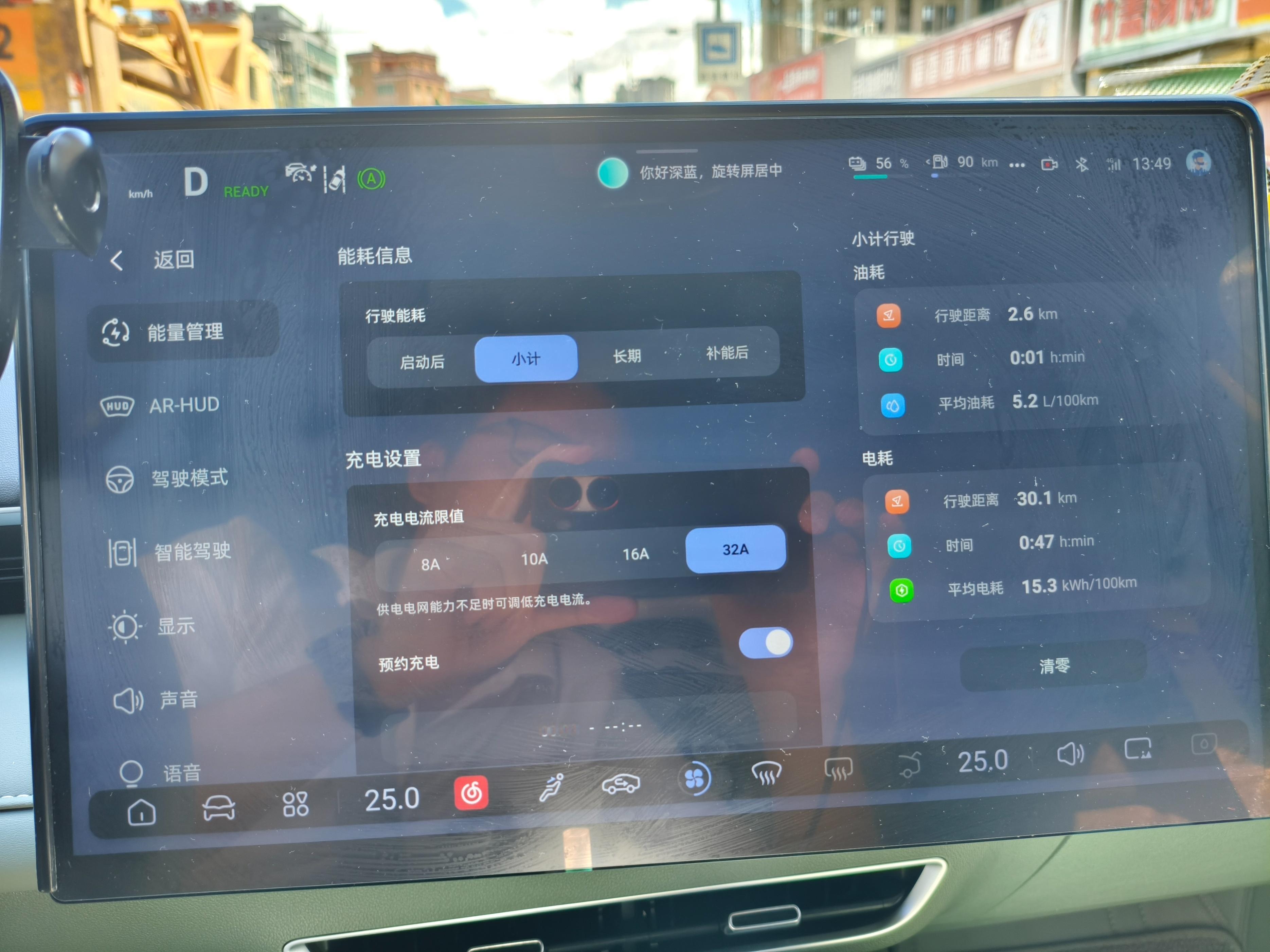 首先是续航表现上:充电后表显纯电续航都是190,一般在市区实际使用也能有85%以上,回一趟老家满油满电也能有800的续航(全程93%的高速),可以说没有续航焦虑;