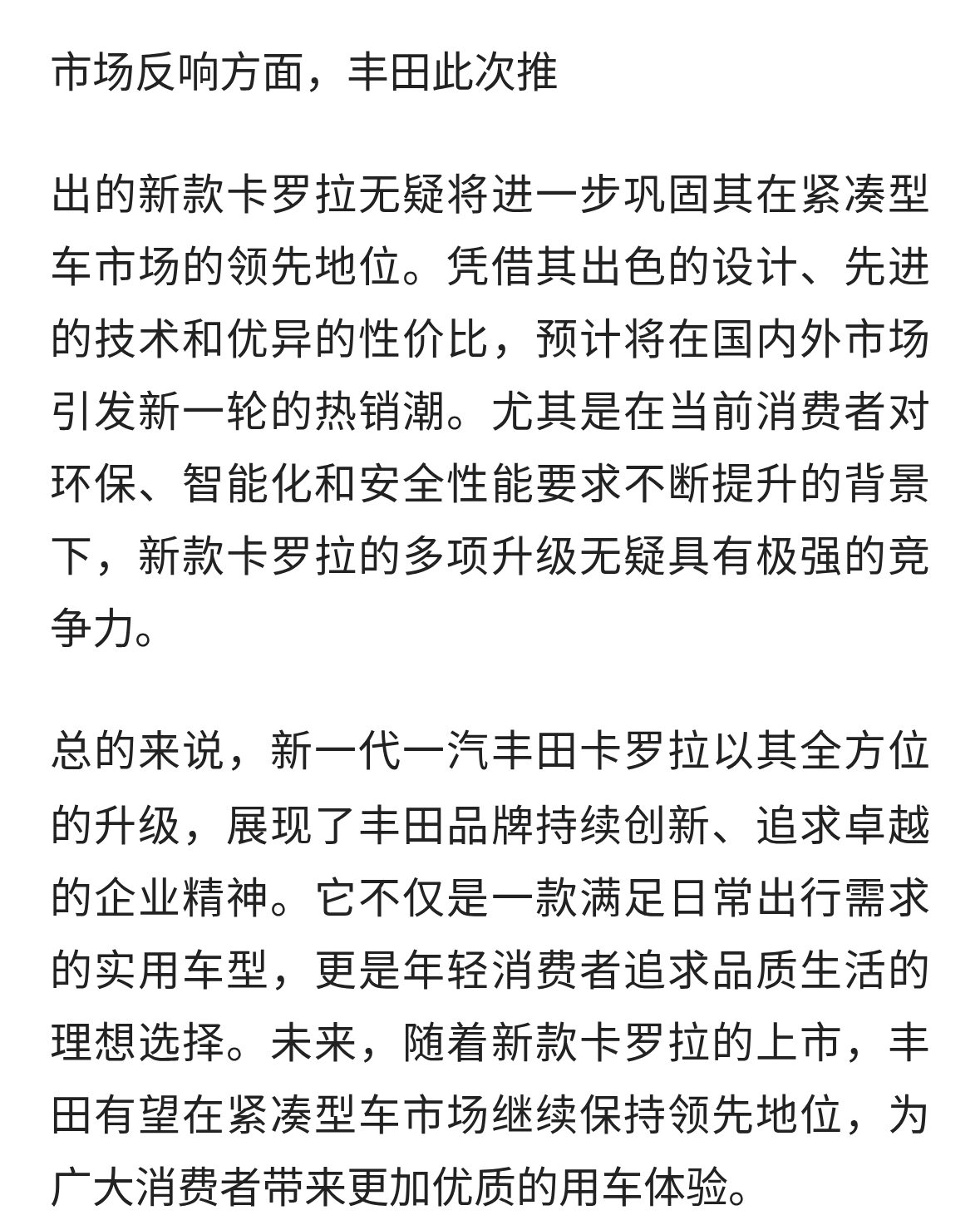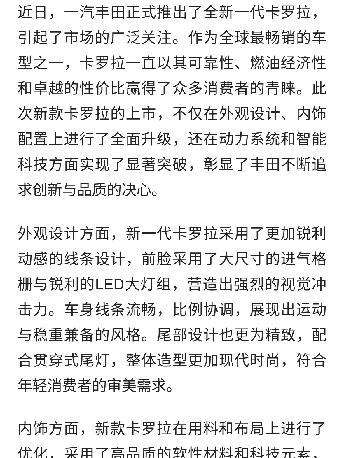 新款一汽丰田卡罗拉上市!