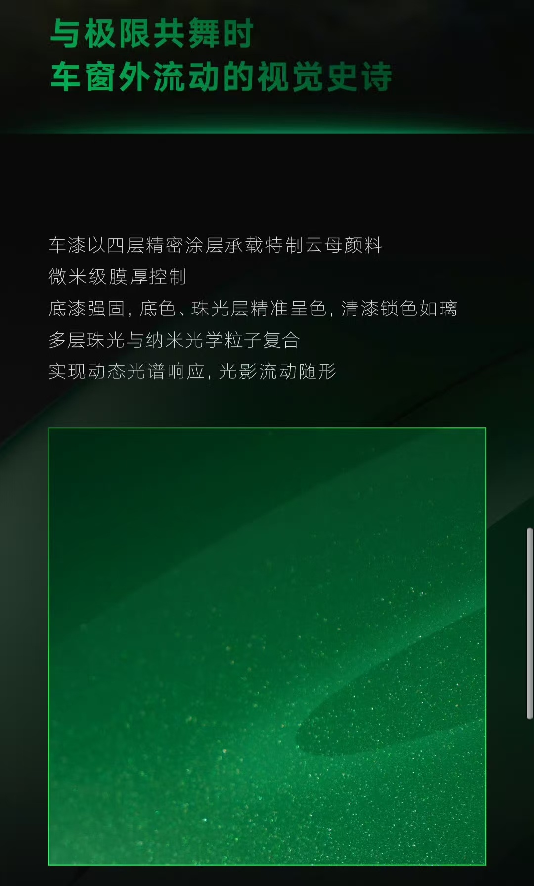仰望U9专属纪念色上市 仰望U9的专属纪念色极境森林终于官宣了,这抹绿也太会了吧!静下来是深林的静谧质感,跑起来又像流光一样灵动,直接把“静如处子动如脱兔”具象化了。说起来这配色还是为了致敬仰望U9 Xtreme在纽北刷下电车纪录的封神时刻,中国超跑在世界赛道上扬眉吐气,现在又用这么有纪念意义的颜色把这份荣耀定格,仪式感直接拉满。我愿称这抹“极境森林绿”为纽北荣耀限定色,光看图片都能感受到那种突破极限的气场,这颜值+实力的组合,谁看了不喊一句绝!仰望U9纪念色致敬纽北登顶