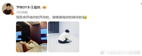 王俊凯营业哄粉丝王俊凯工作背影王俊凯连轴转的工作日常,项目会加排练不停歇,抽空营